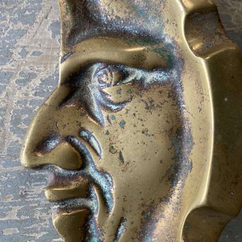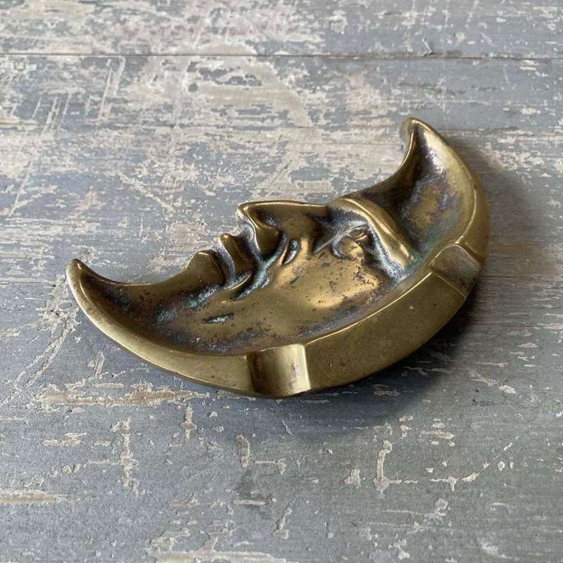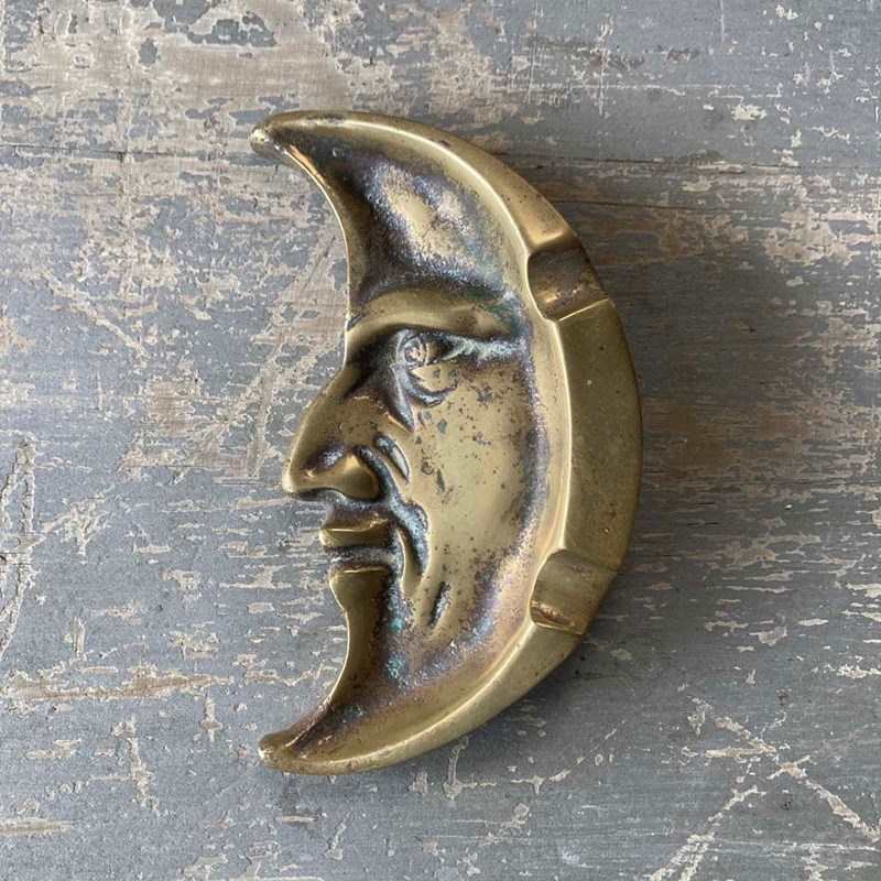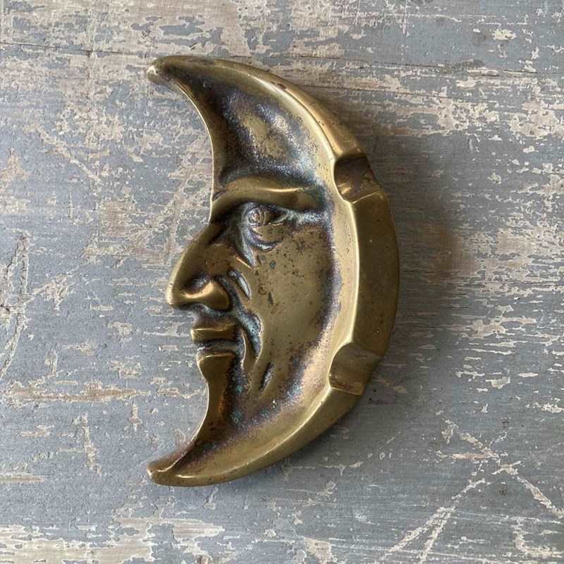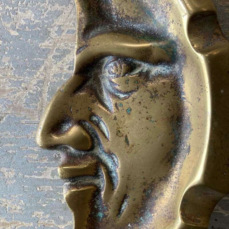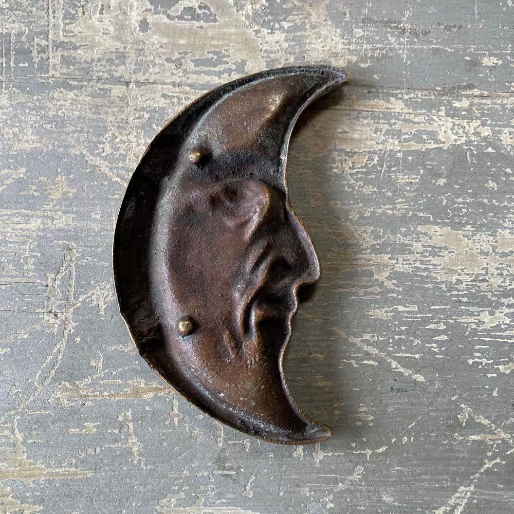 An early 20th century cigarette ash tray, in the shape of the man-in-the-moon. Decorative enough to warrant being hung and displayed on a wall!