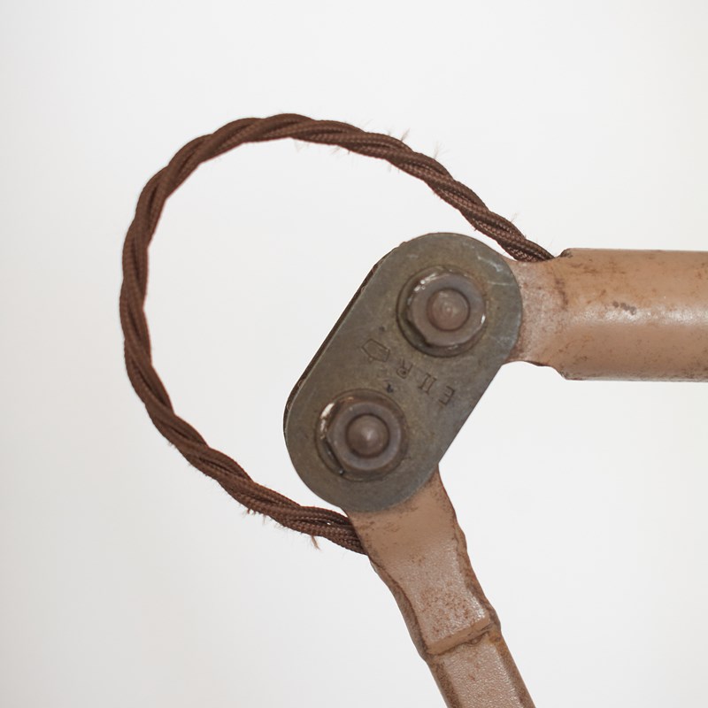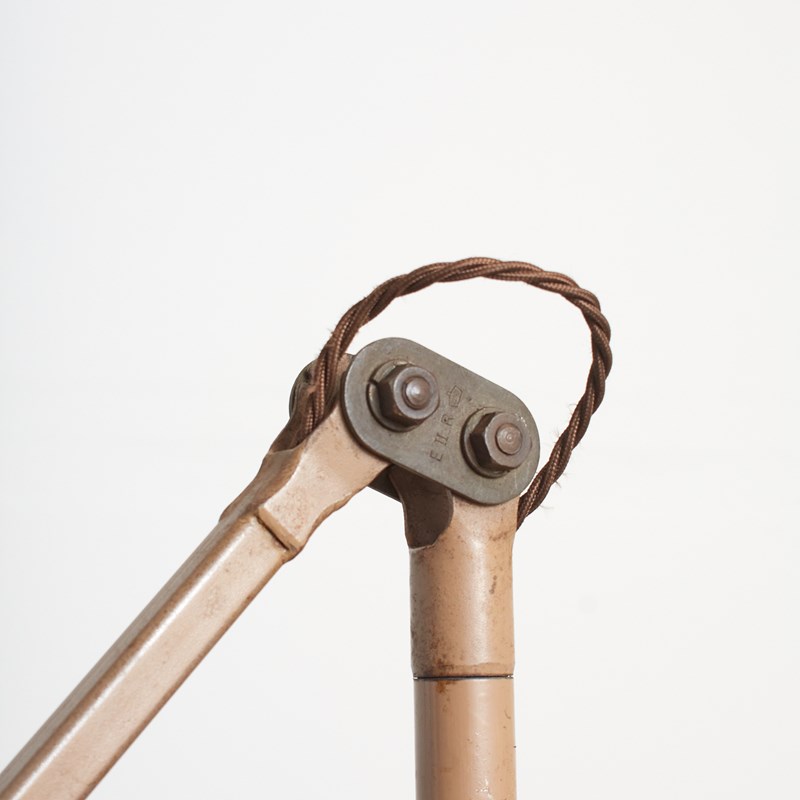 The makers mark is stamped to the lamp components, it also retains the ‘EIIR’ stamp to the arm joint plates – referencing ‘Elizabeth II Regina’ denoting their former government use. These were typically used by the MOD in munitions factories.