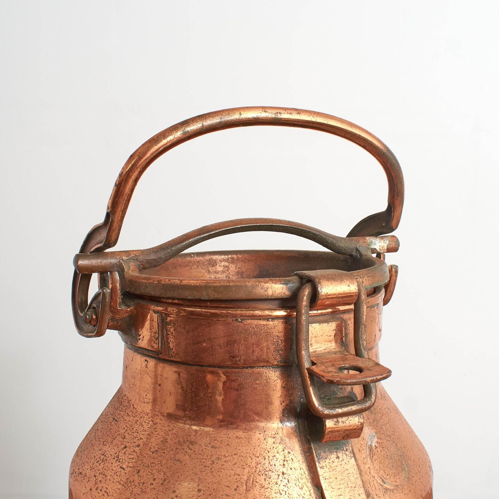 A stunning copper milk churn retaining its original hinged lid which can be locked on or can be removed as desired. Beautiful as a garden planter, umbrella stand or decorative vase.