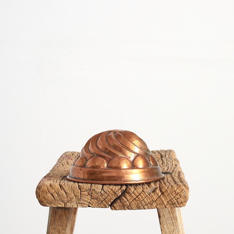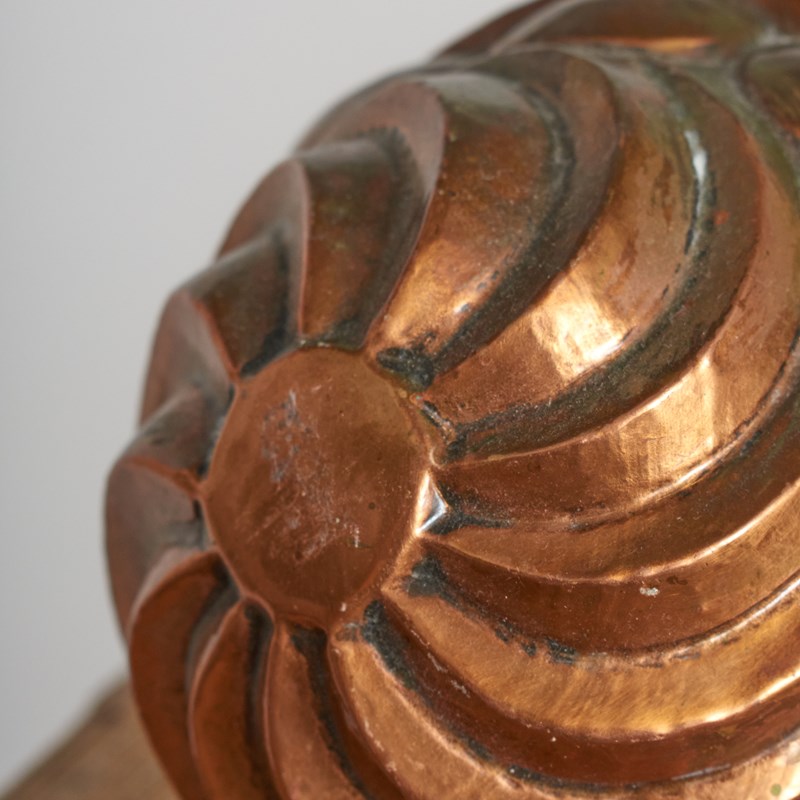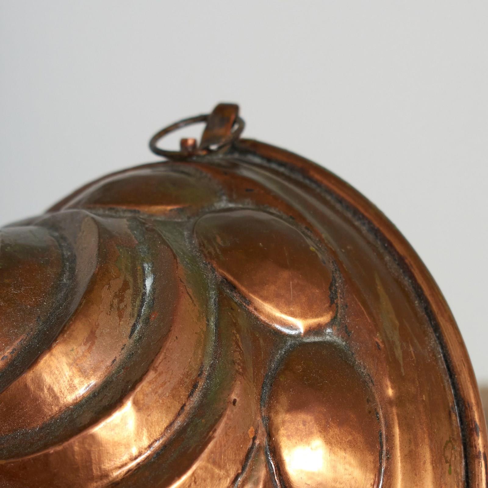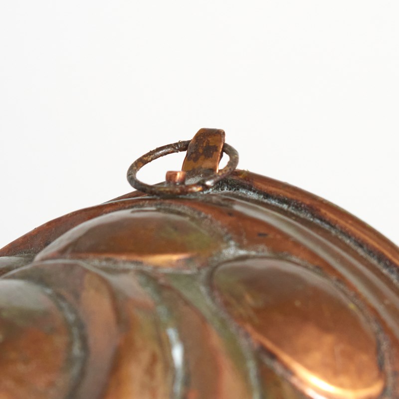 An antique copper jelly mould. It is tin lined and the mould has a useful hanging ring.