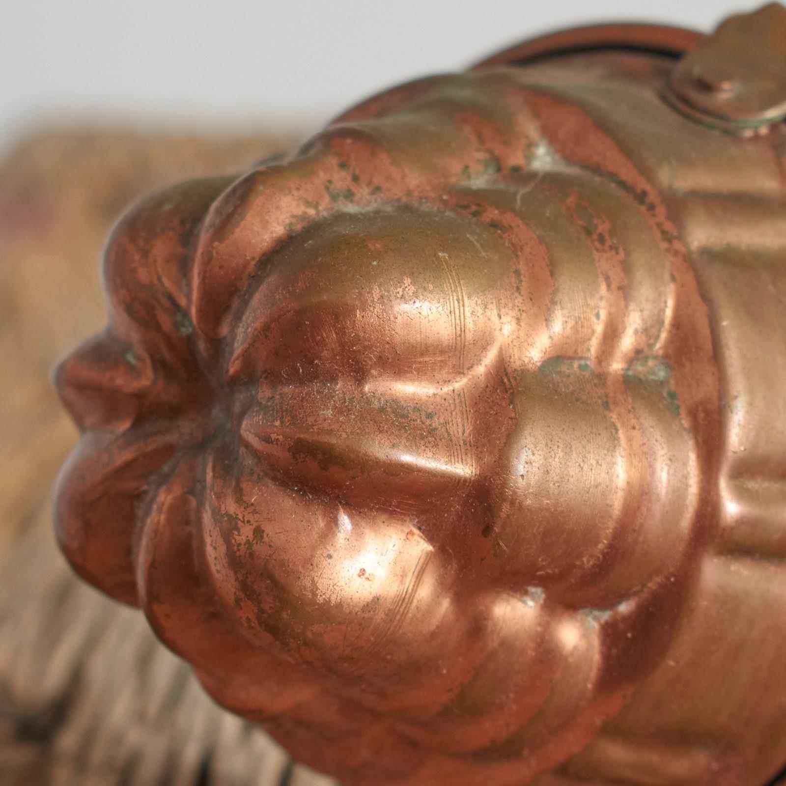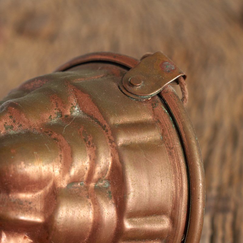 A small antique copper jelly mould. It is tin lined and the mould has a useful hanging ring.