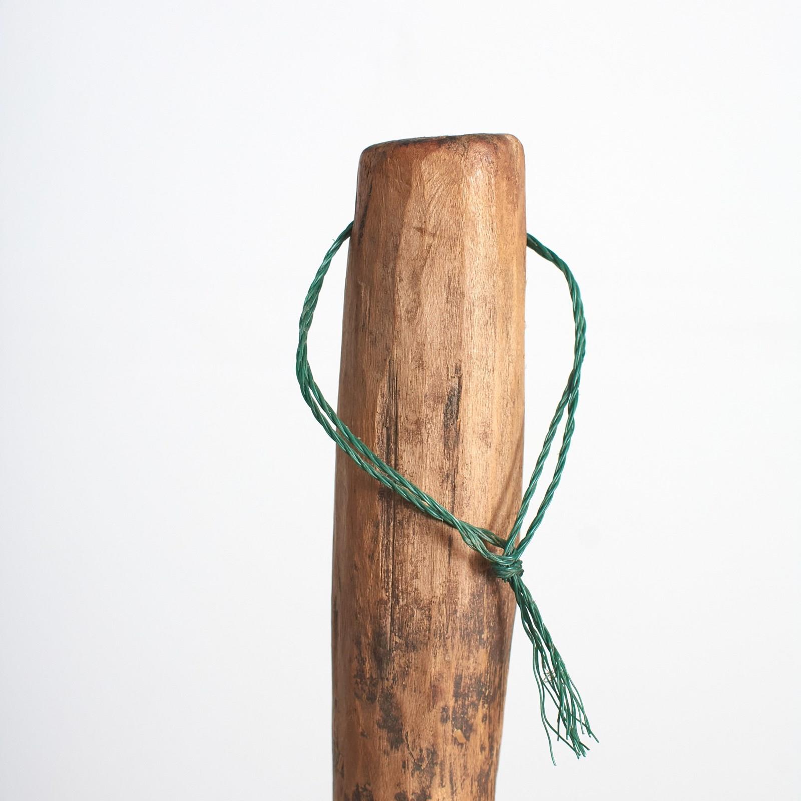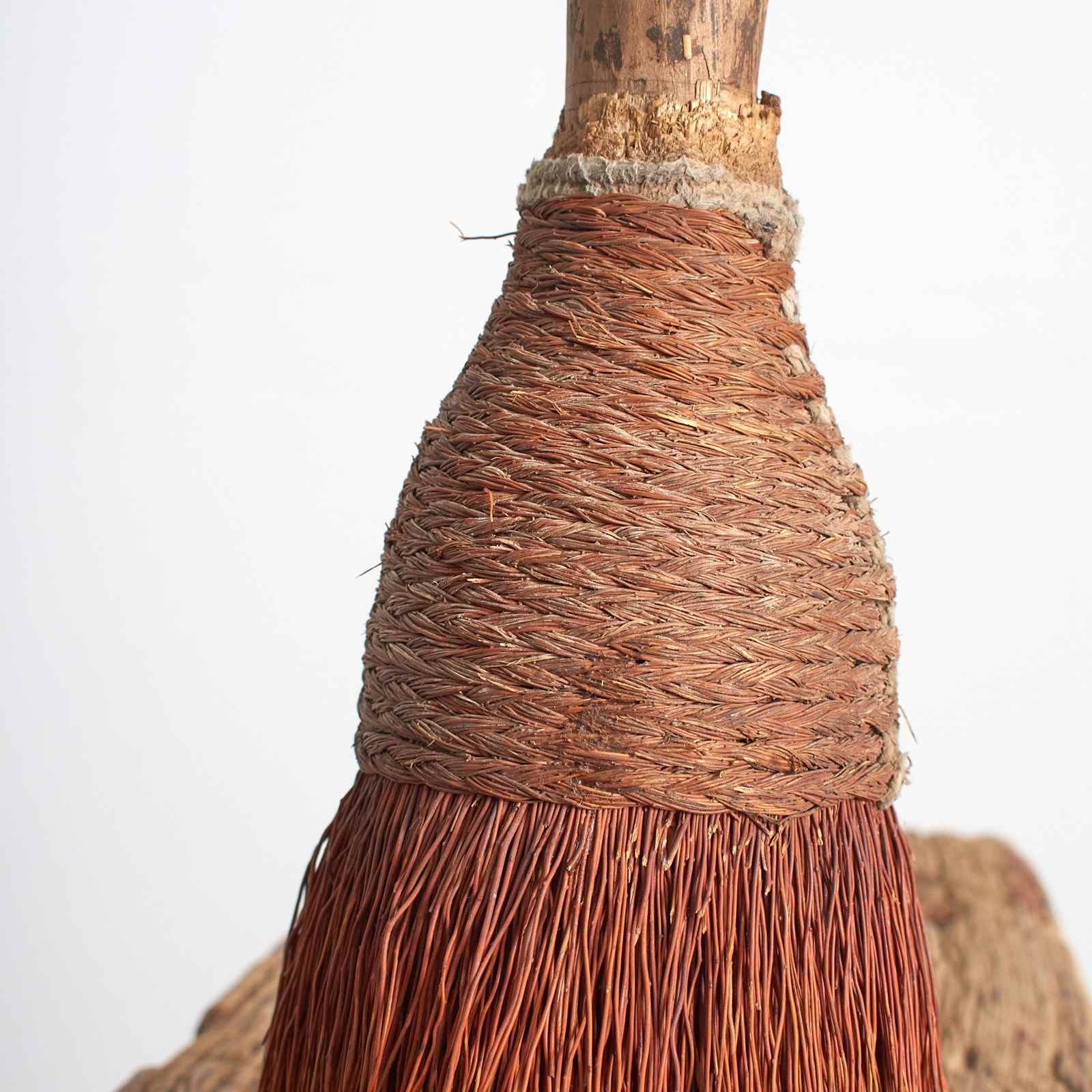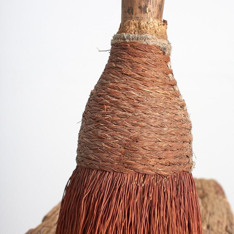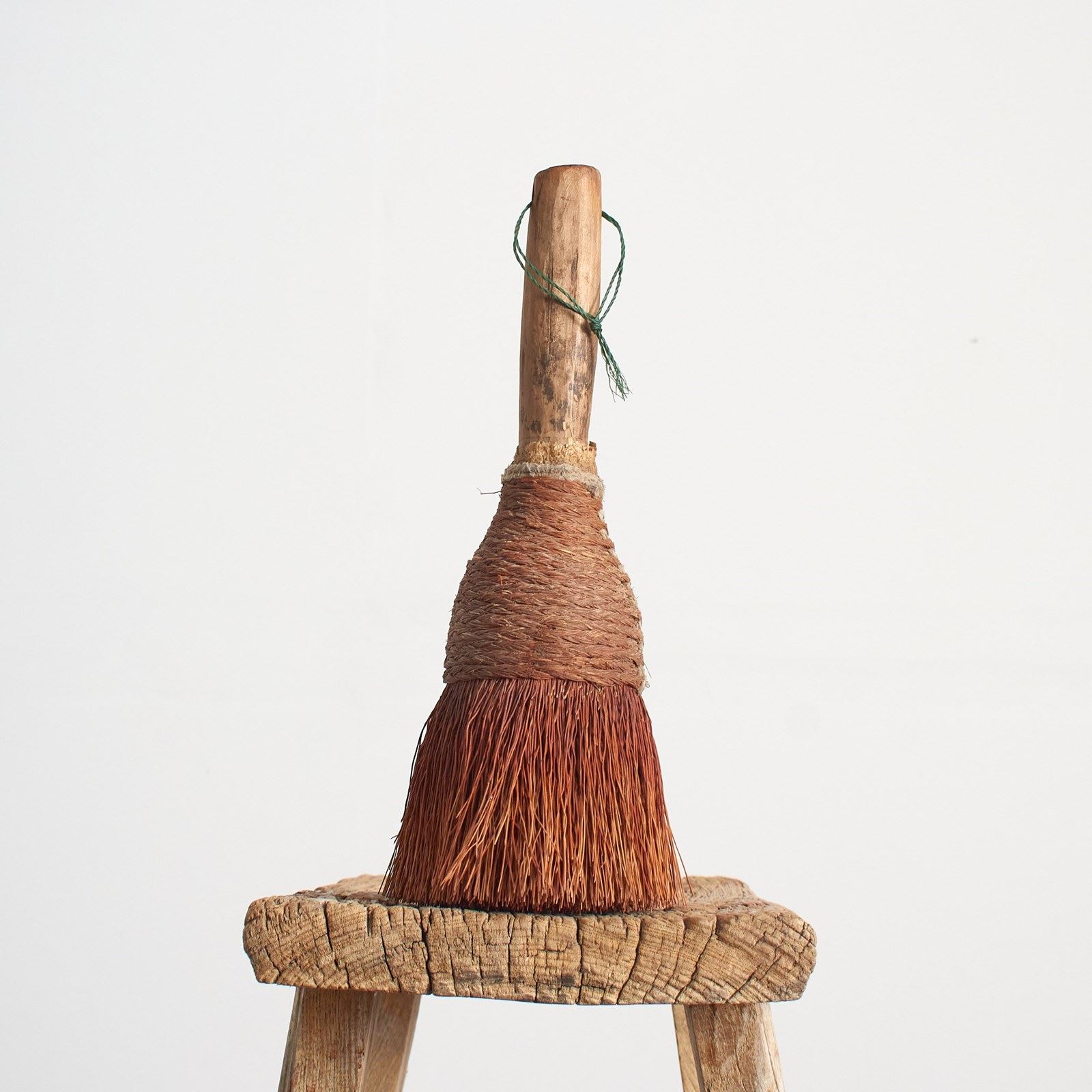 A unique handmade brush, the brush has a wooden handle with natural fibre bristles and a wound thread with string handle. Great for use or as a decorative object.