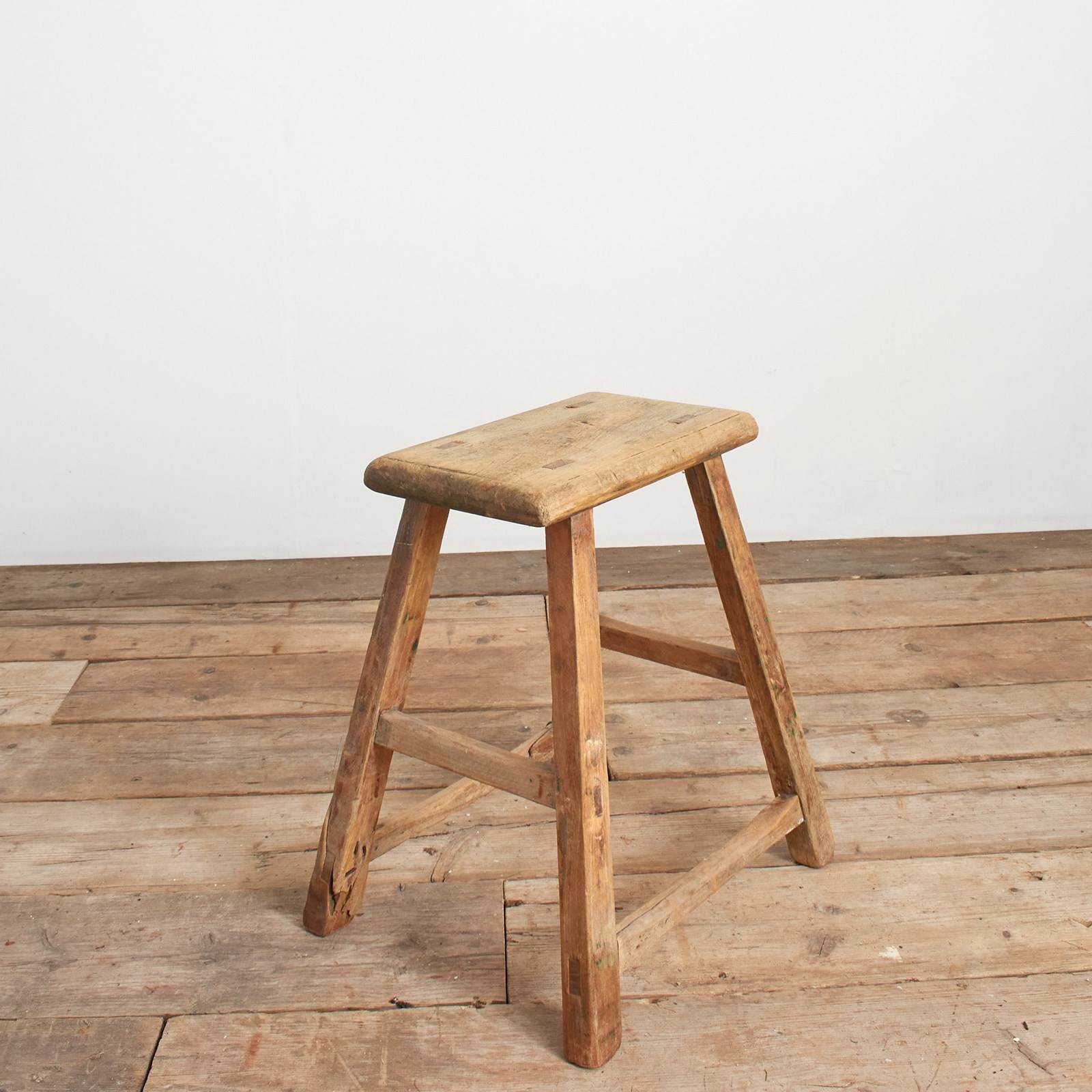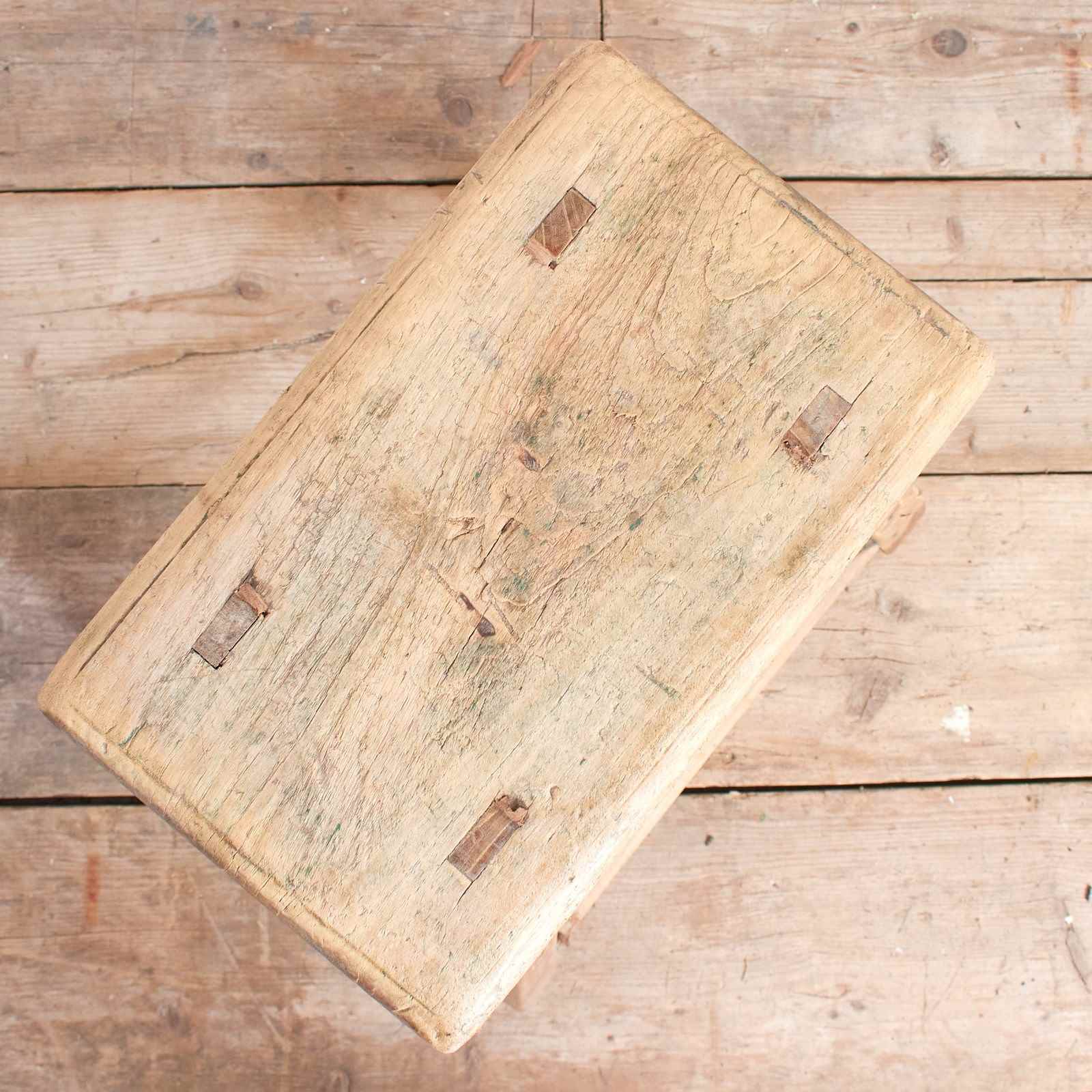 A lovely vintage wooden elm stool/side table. The stool is solid, lovely original patina and character with each one being totally unique. Traditional construction joints the stools are primarily constructed from elm with some stretchers oak or pine. These are great as alternative bedside tables, for using in the bathroom, kitchen, or for placing plants on.