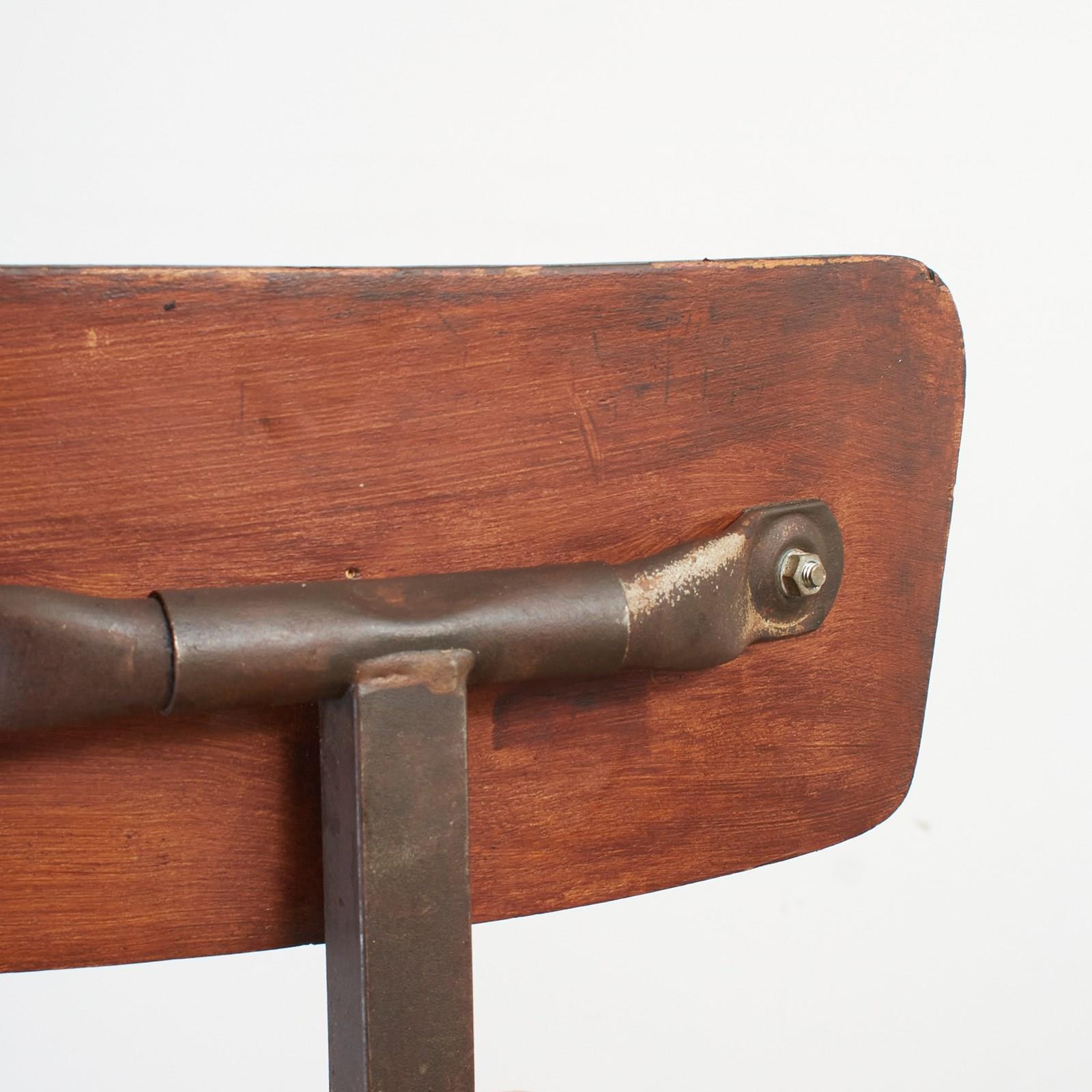 An original Bienaise Industrial Chair. A classic 1940’s French Industrial Design Produced by the Nelson Brothers – Model No. 204.This chair would have been seen across many industrial French factories in the mid-century. This is a solid chair with the seat & back rest both adjustable in height & position. The chair retains its original makers mark to the seat upright.