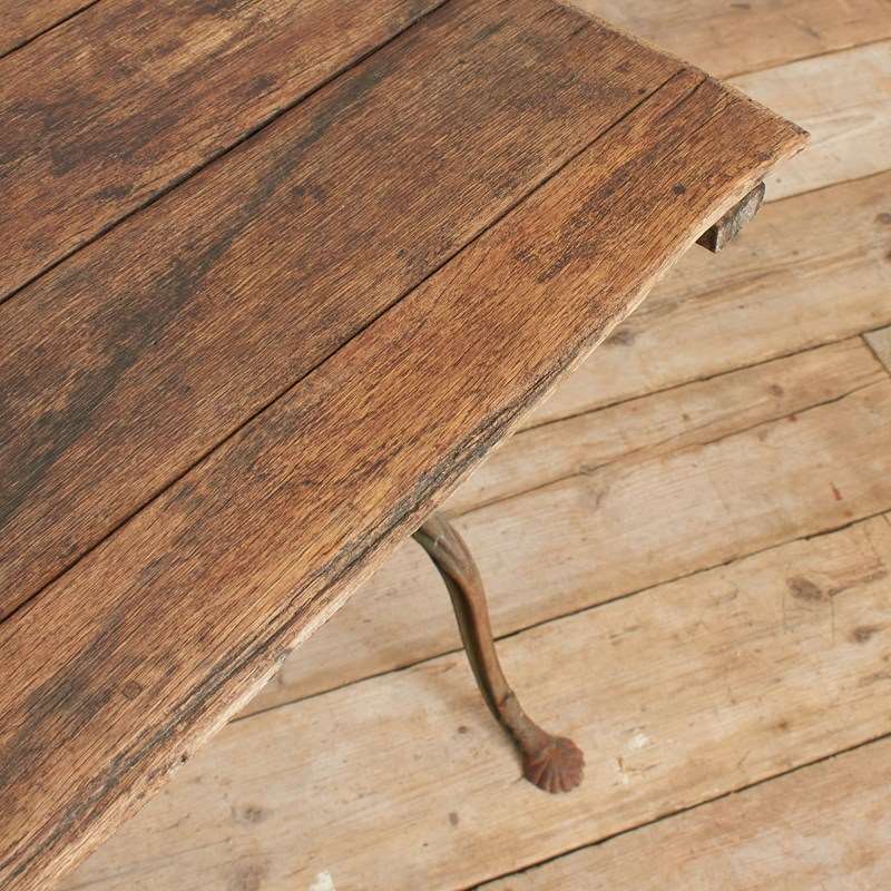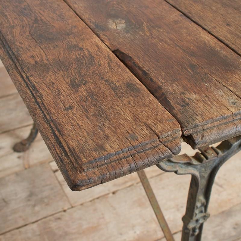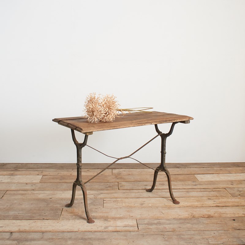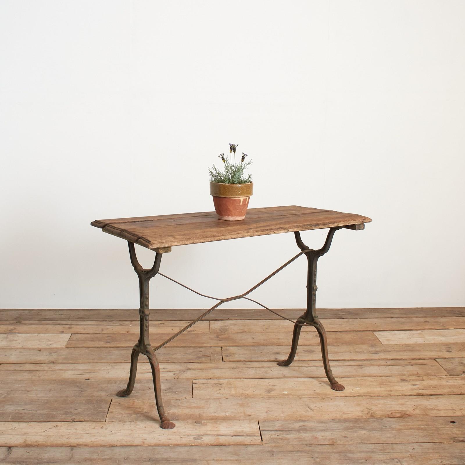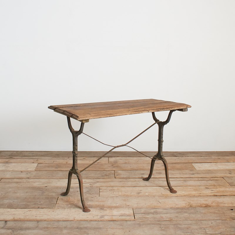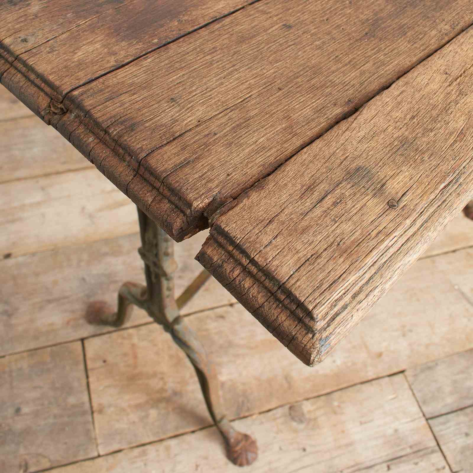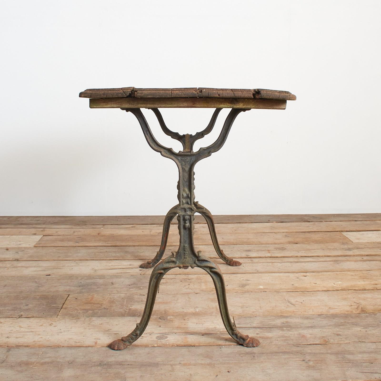 A fantastic original late 19th century French iron bistro table retaining its original wooden top and stunning wrought iron base.