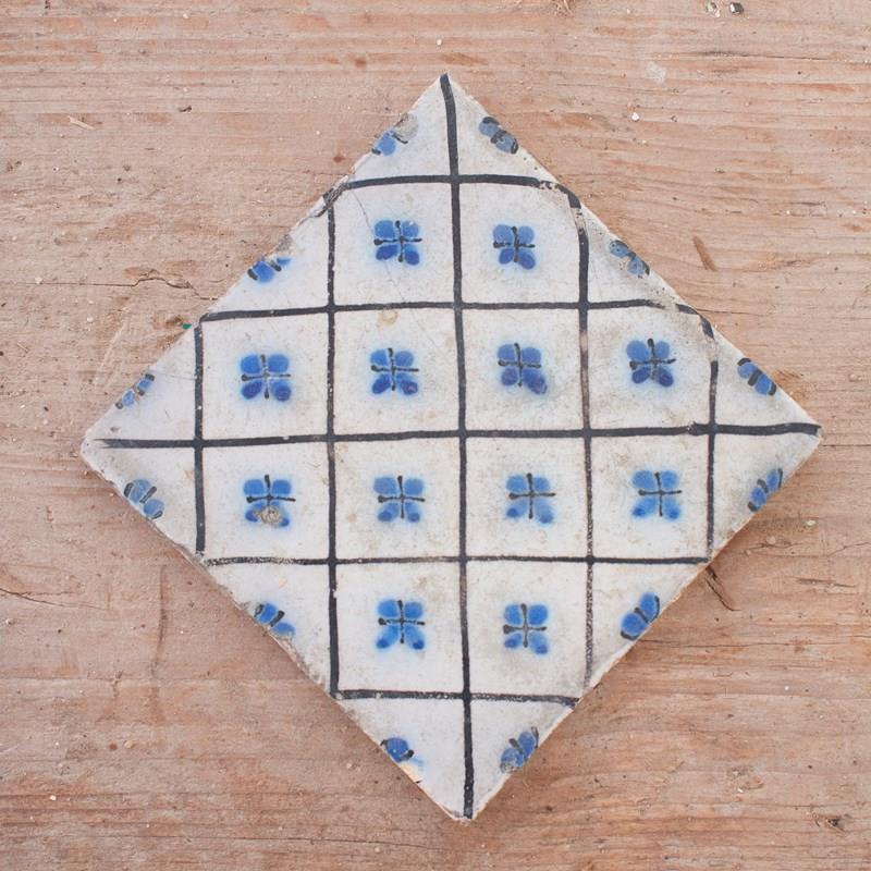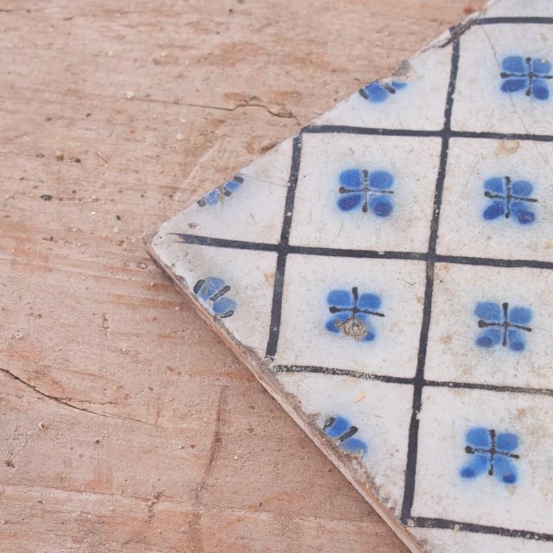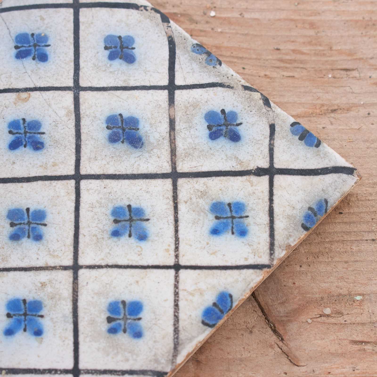 A beautiful nineteenth century ceramic handpainted tile salvaged from a farmhouse in Northern France. The tile has a lovely subtle glaze to the front.