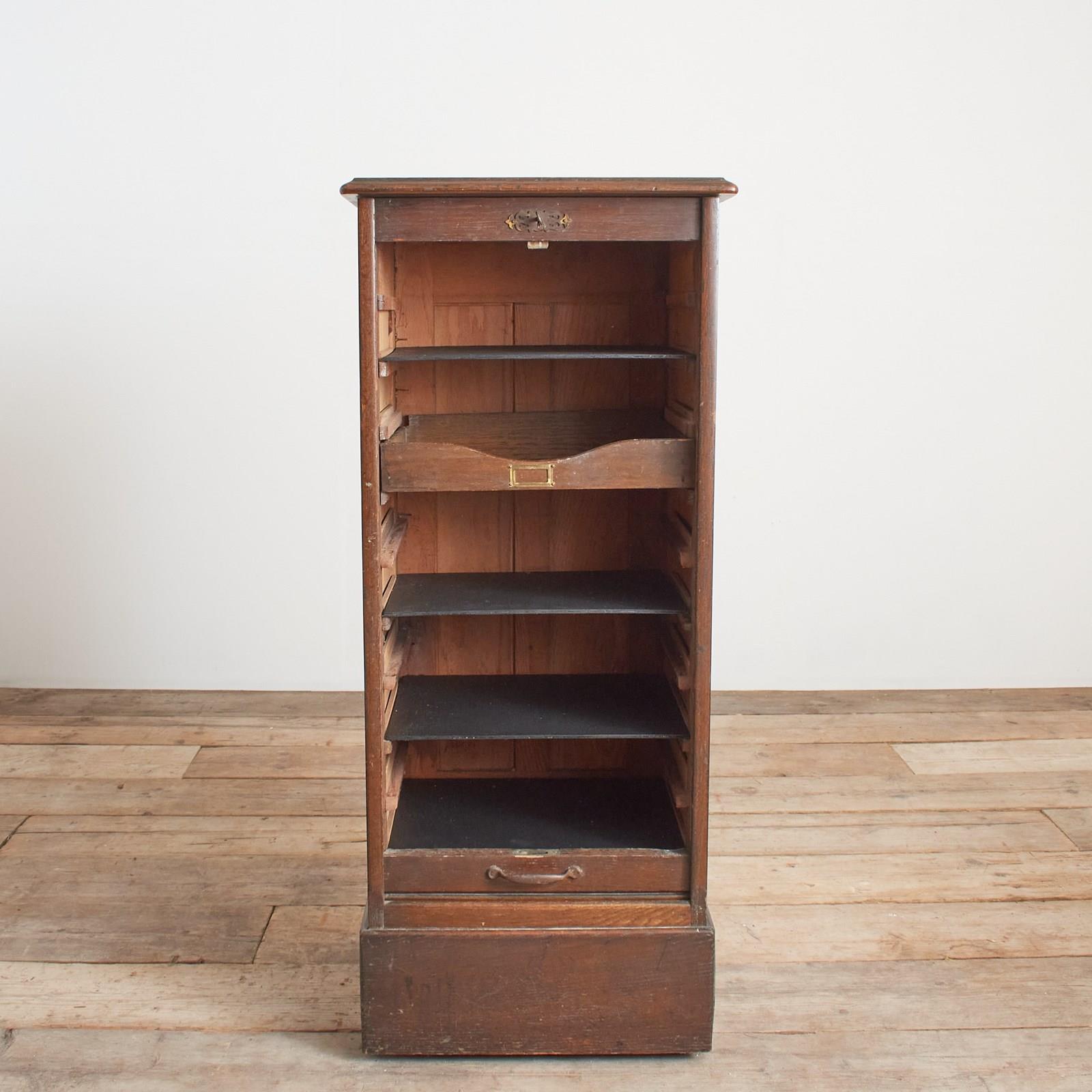 Antique French Single Oak Tambour Filing Cabinet