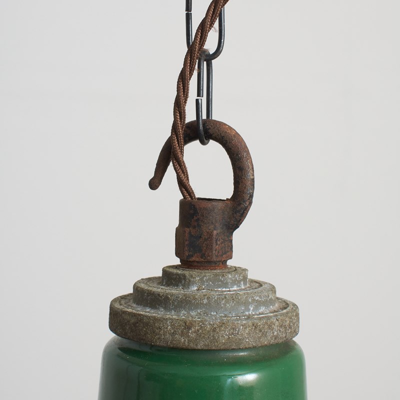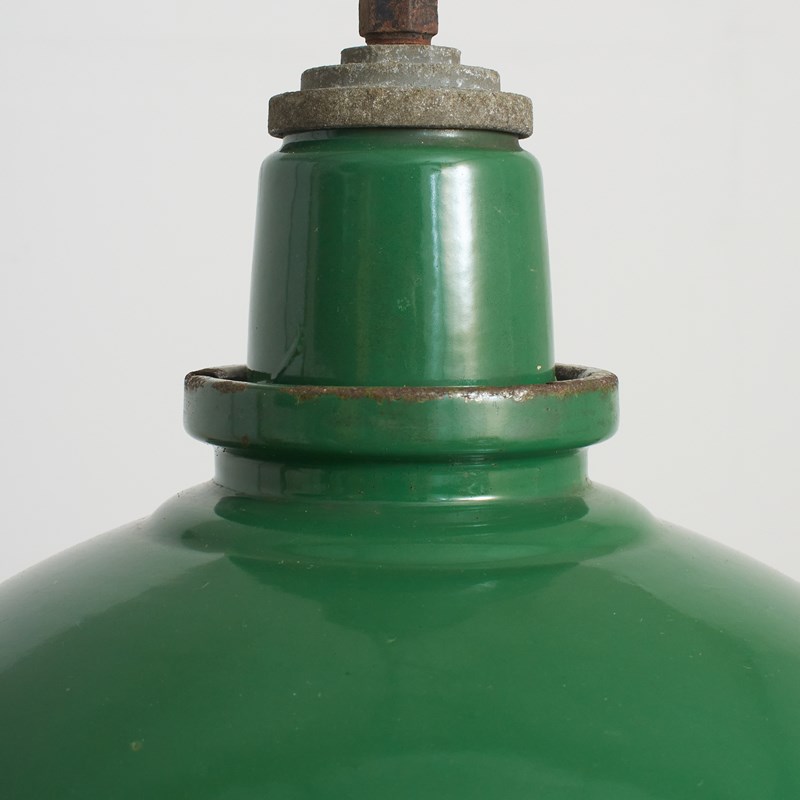 Workshop Report: The workshop team inspect all products and perform any necessary repairs to ensure many more years of future use, with lighting we deep clean the shades and professionally remove all existing electrical components and fit new CE certified electrical fittings to BS EN 60598. There are some blemishes to the enamel in places as expected with years of use. This light is supplied with new period style brown twisted 3 core fabric flex and CE certified E27 bayonet lampholder, hanging chain and ceiling rose with hook. Lights can take up to 100W Equivalent LED bulb. We can wire for the US with UL Certified flex and bulb holder if required.