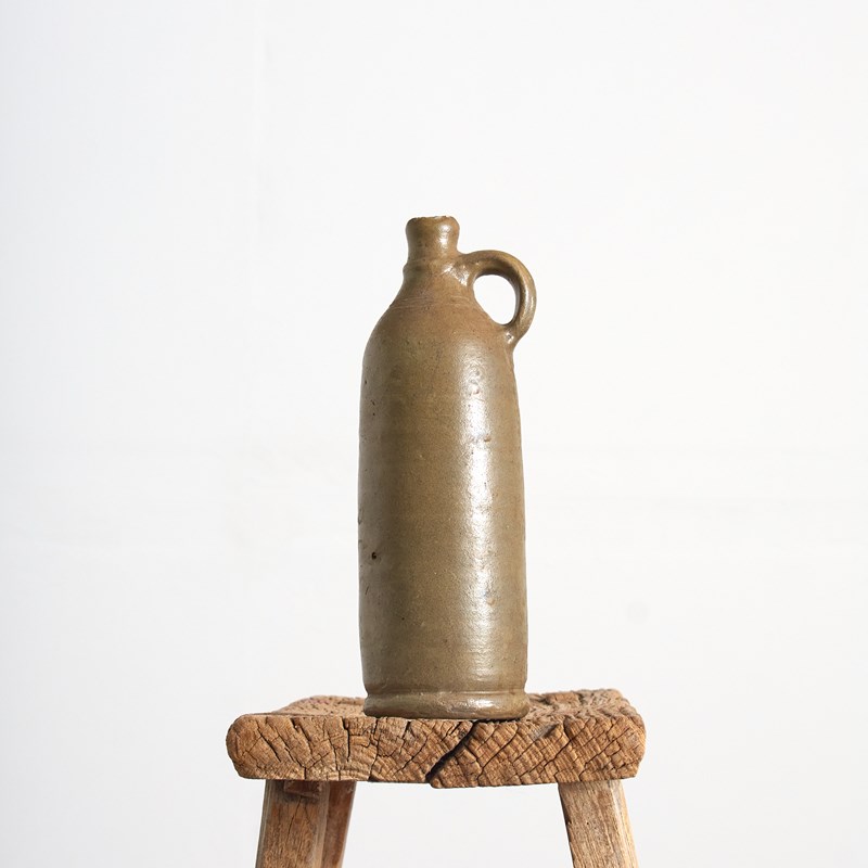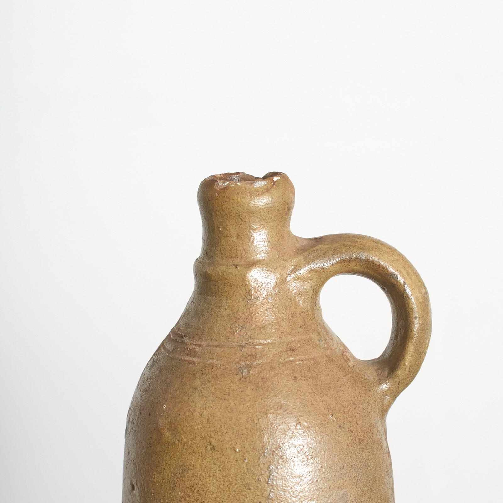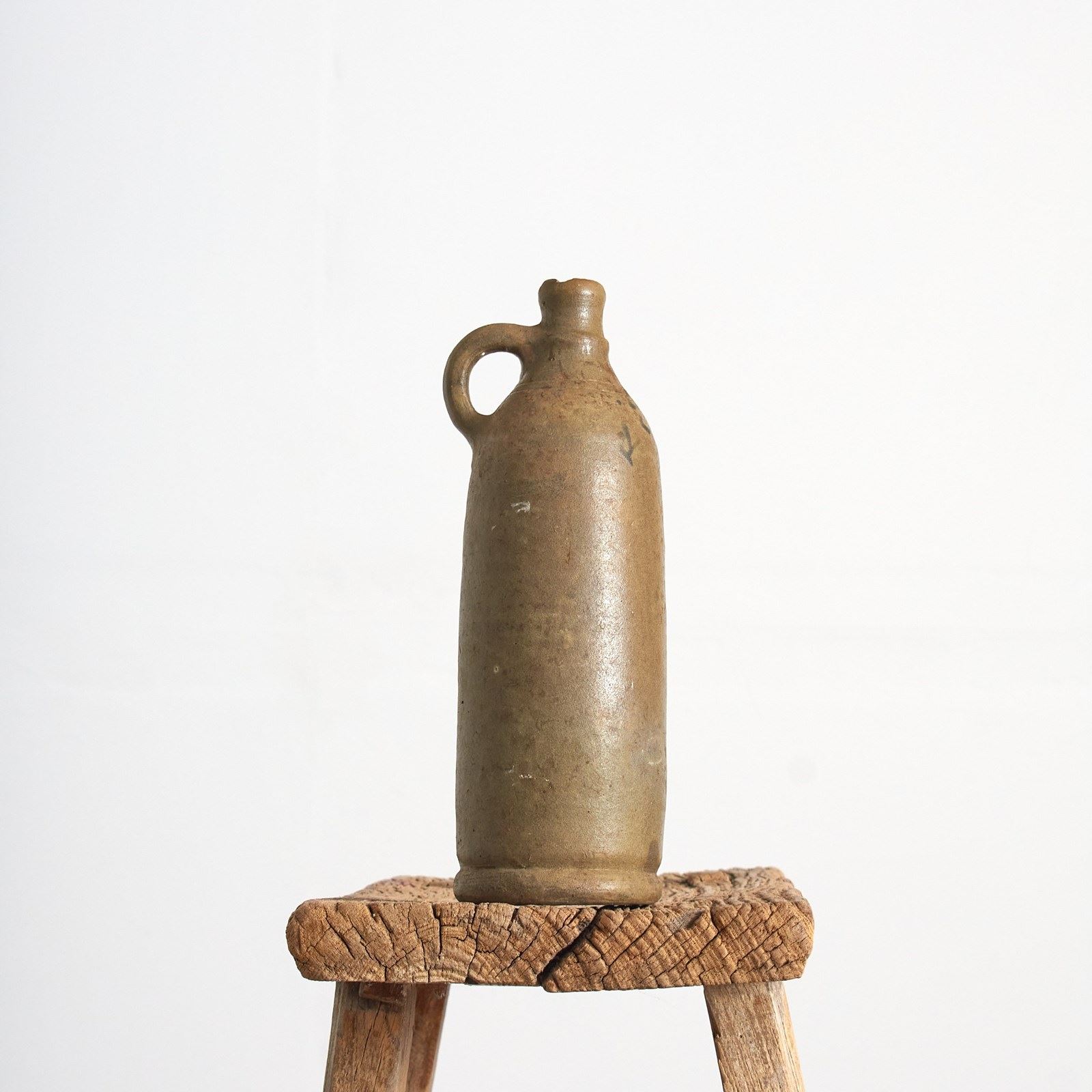 An original French stoneware cider bottle which is a beautiful handmade object bringing character to any room on its own or lovely in a group of bottles. Perfect for a cut flower or even as a candle holder.