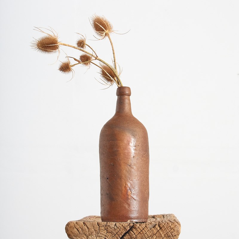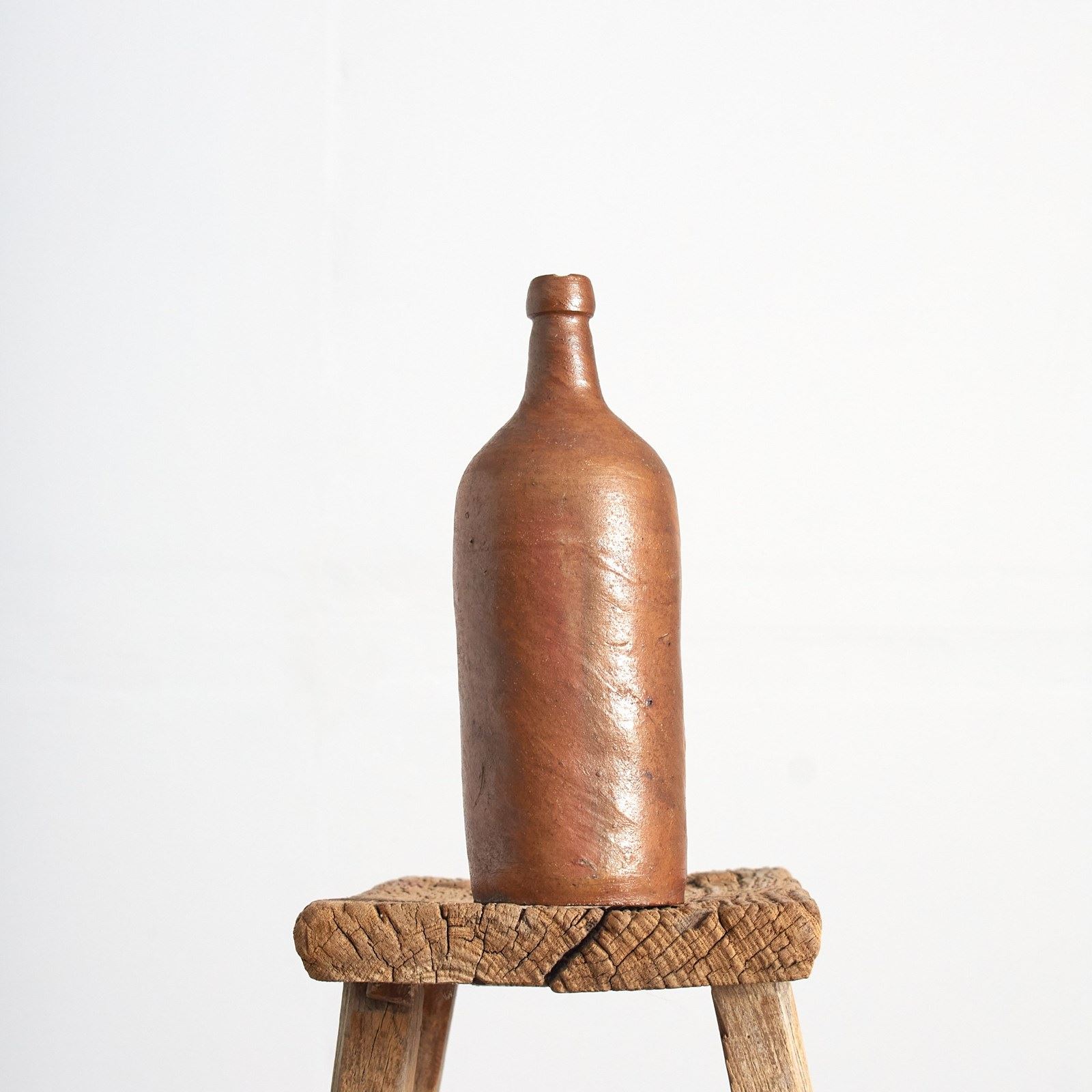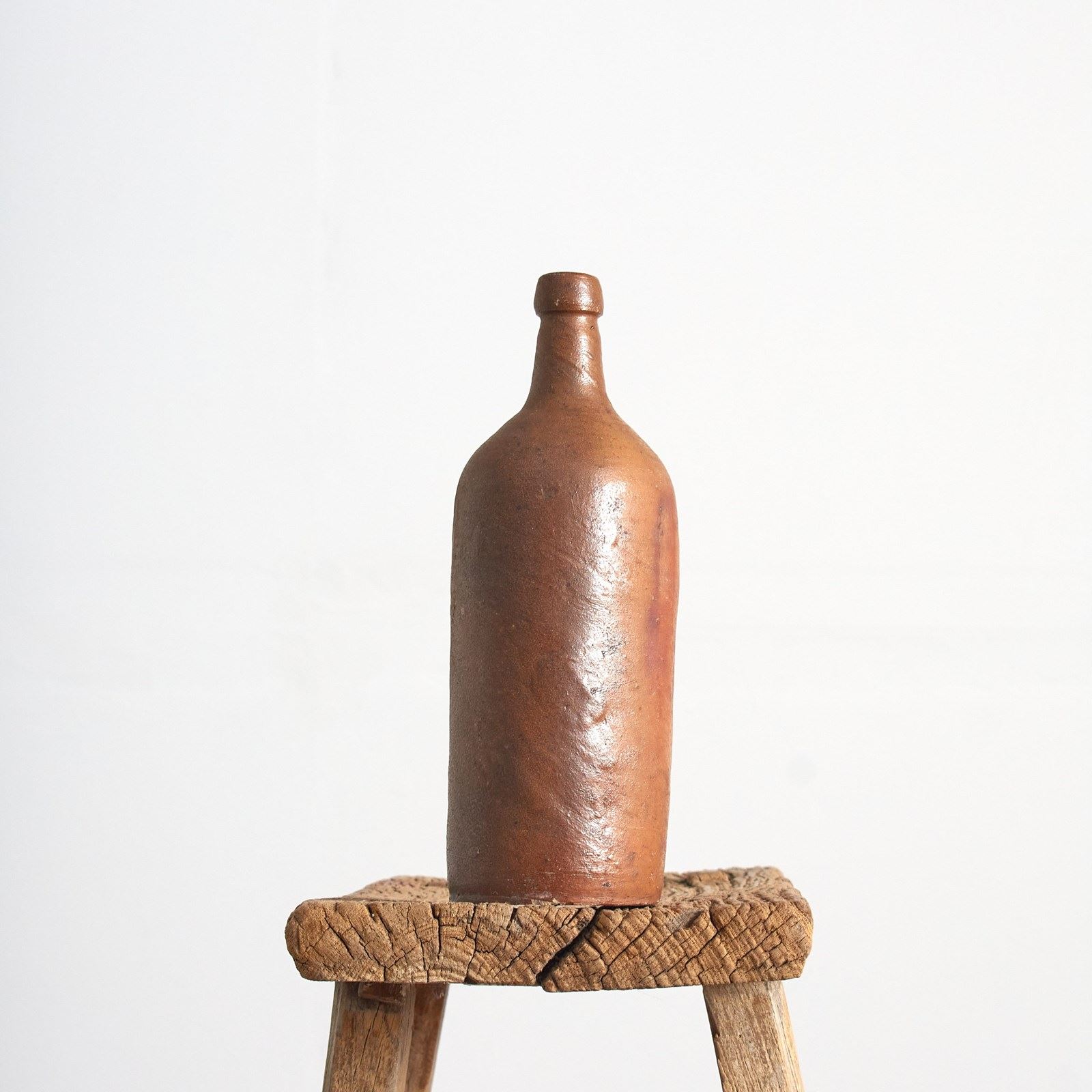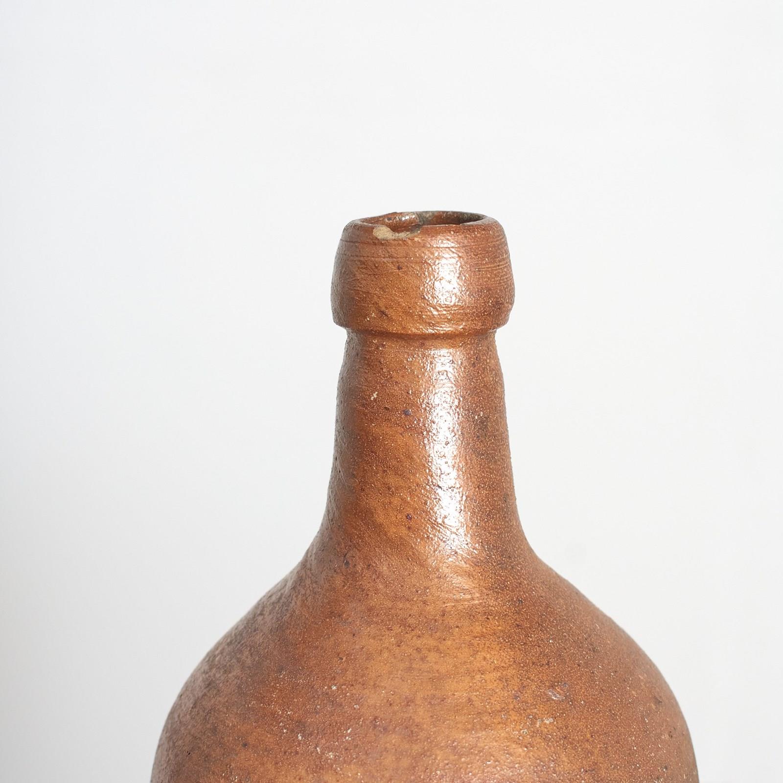An original French stoneware cider bottle which is a beautiful handmade object bringing character to any room on its own or lovely in a group of bottles. Perfect for a cut flower or even as a candle holder.