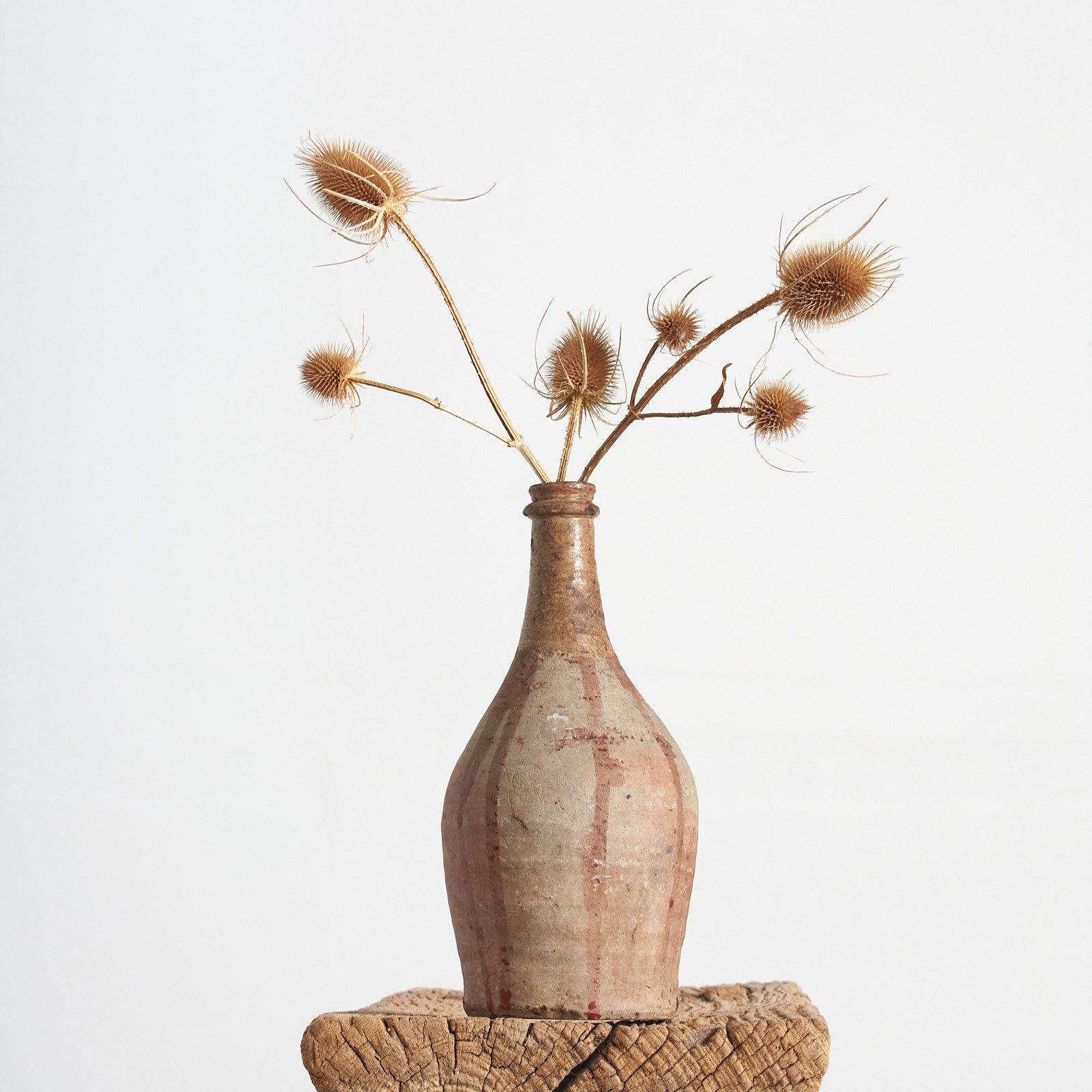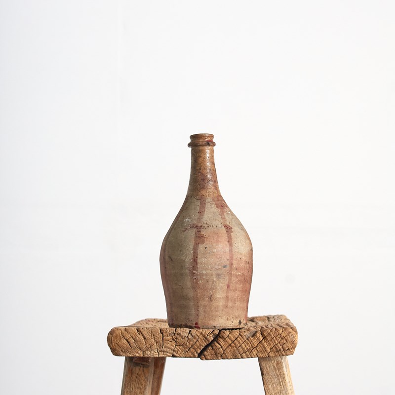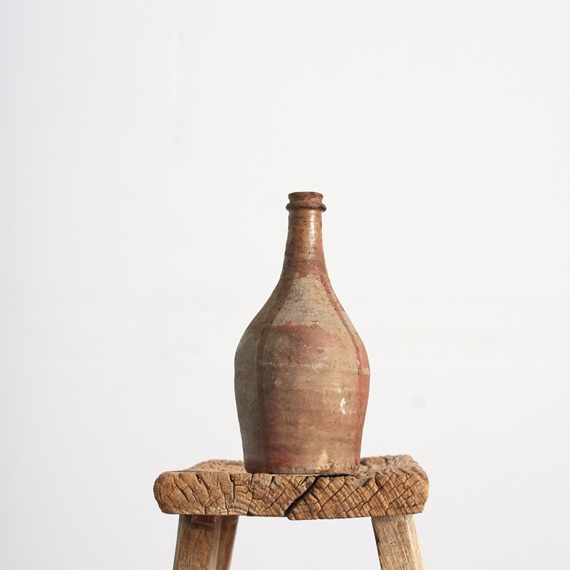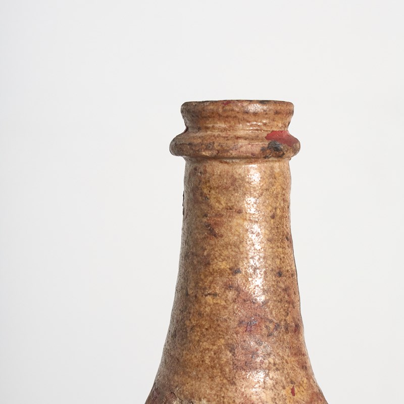 An original French stoneware cider bottle which is a beautiful handmade object bringing character to any room on its own or lovely in a group of bottles. Perfect for a cut flower or even as a candle holder.