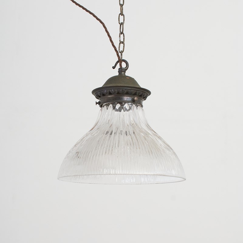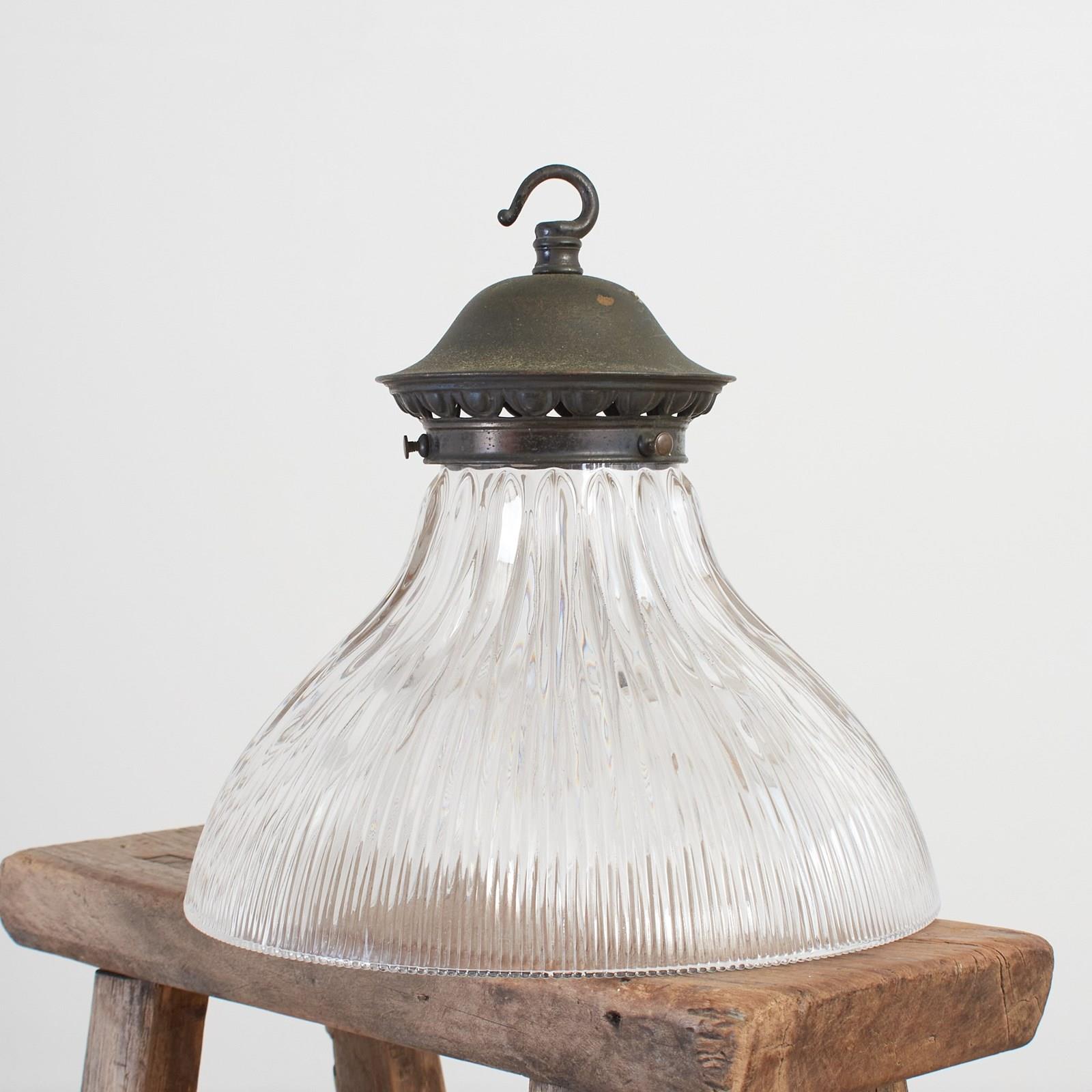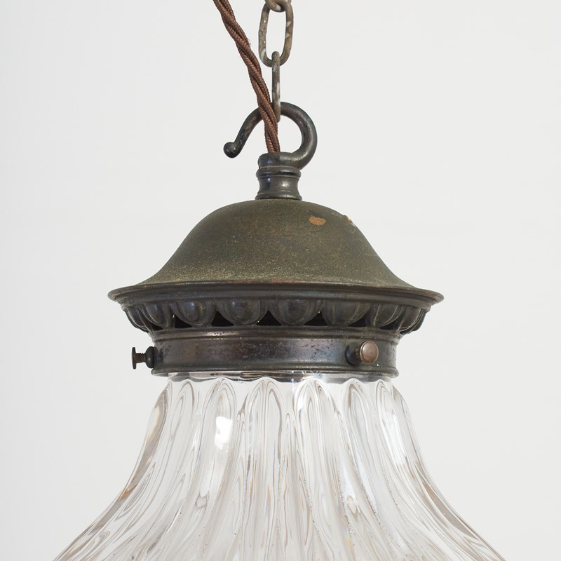 Antique Reclaimed Holophane Glass Pendant Light – L