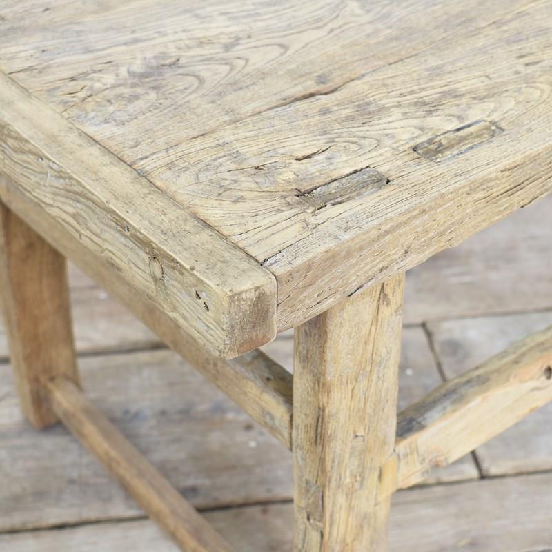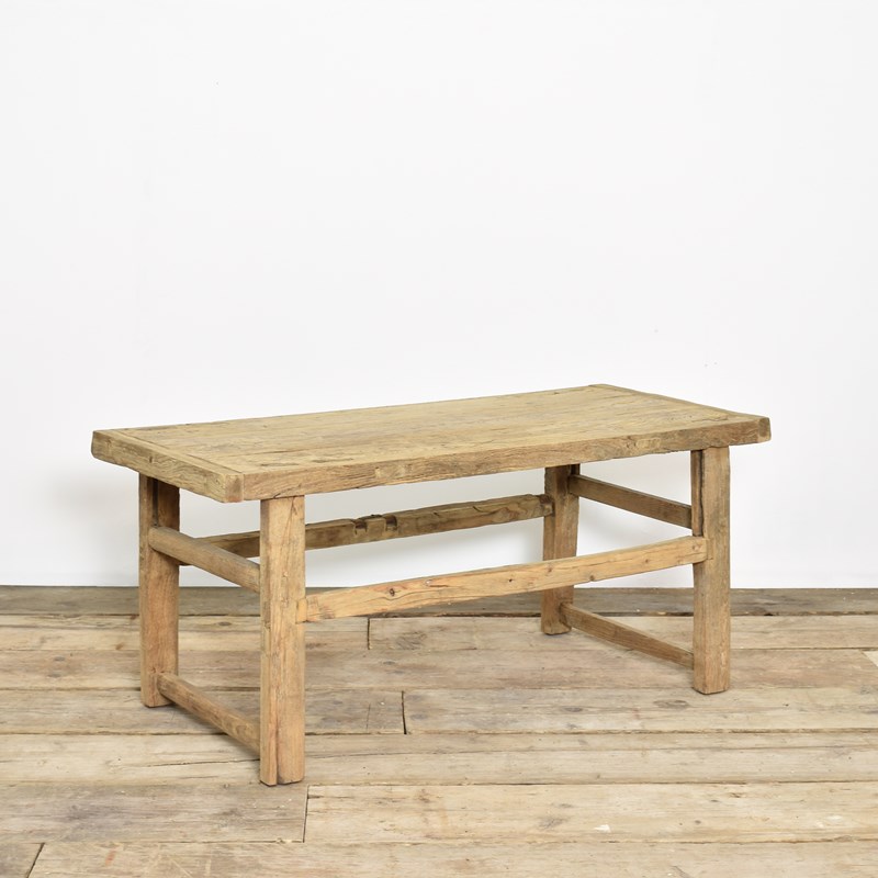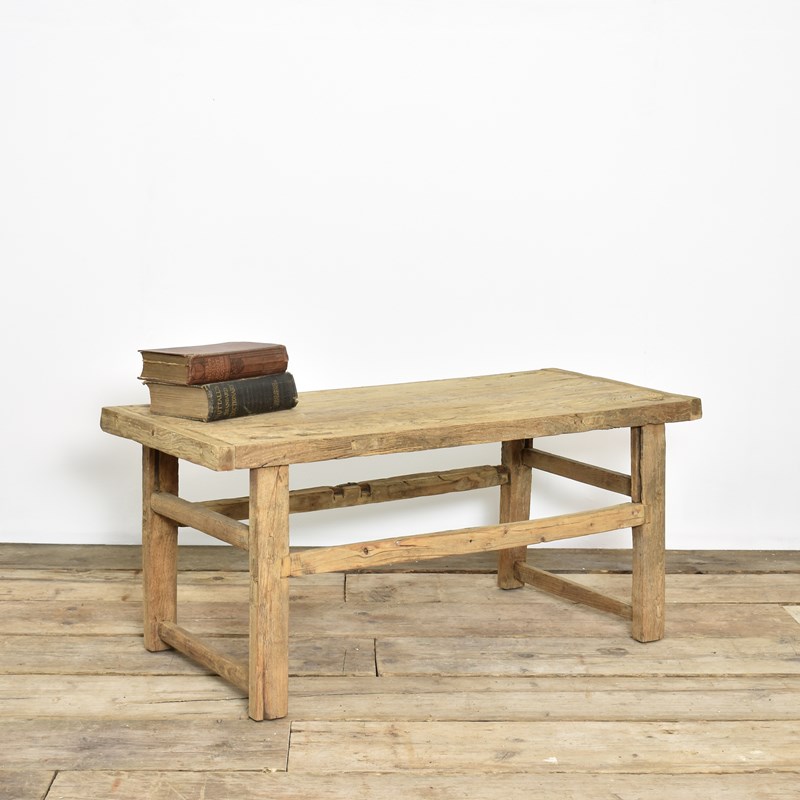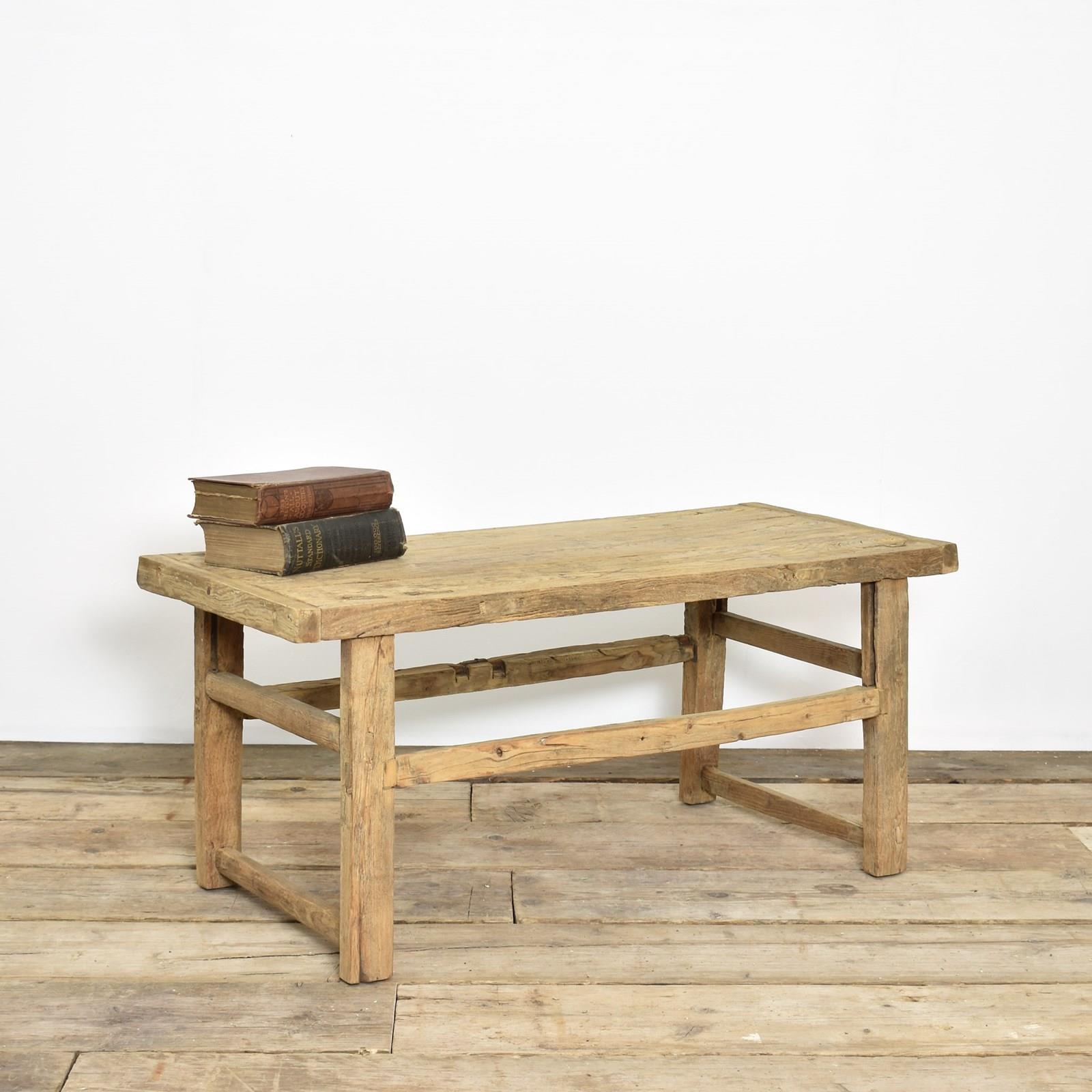 A beautiful vintage solid wooden elm coffee table with some lovely original patina. The weathered plank table top has plenty of rustic character. The table is crafted from reclaimed ancient elm with traditional construction joints.