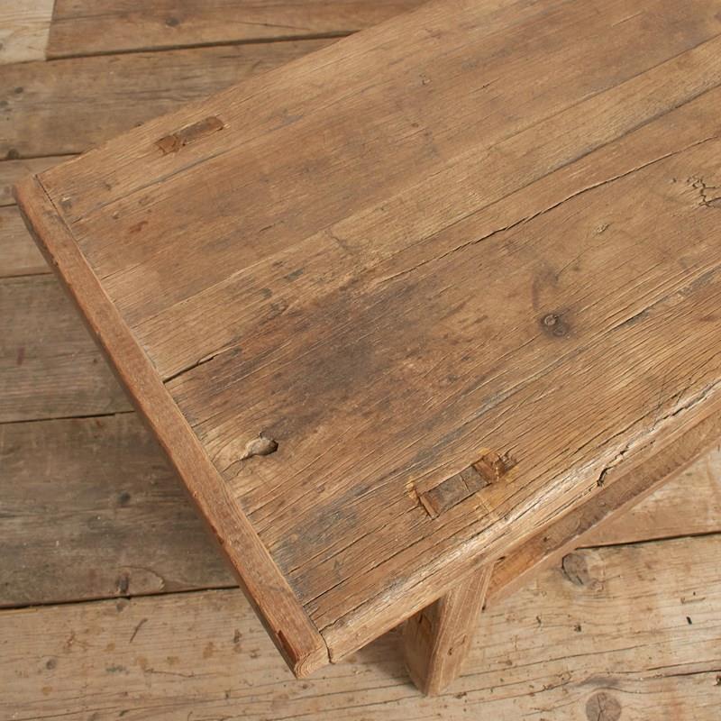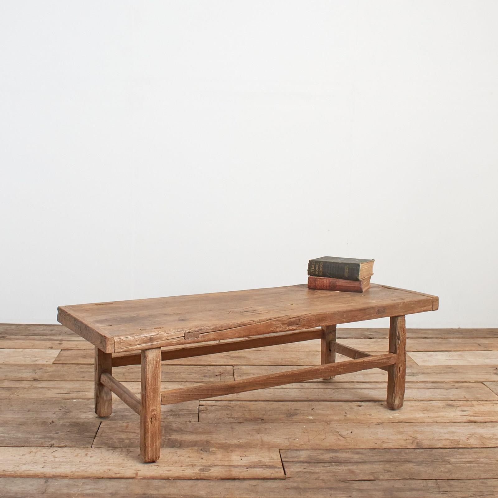 A beautiful vintage solid wooden elm coffee table with some lovely original patina. The weathered plank table top has plenty of rustic character. The table is crafted from reclaimed ancient elm with traditional construction joints.