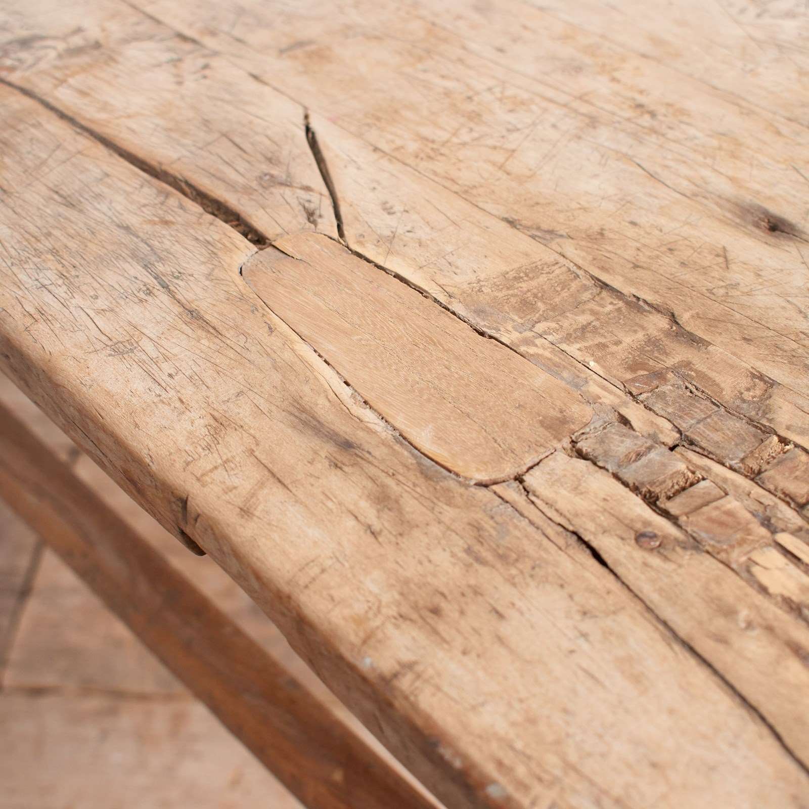 Workshop Report: Overall rustic condition, structurally sound, some historical repairs in places, various imperfections which add to the character. The top has some staining which can be seen from the photos.