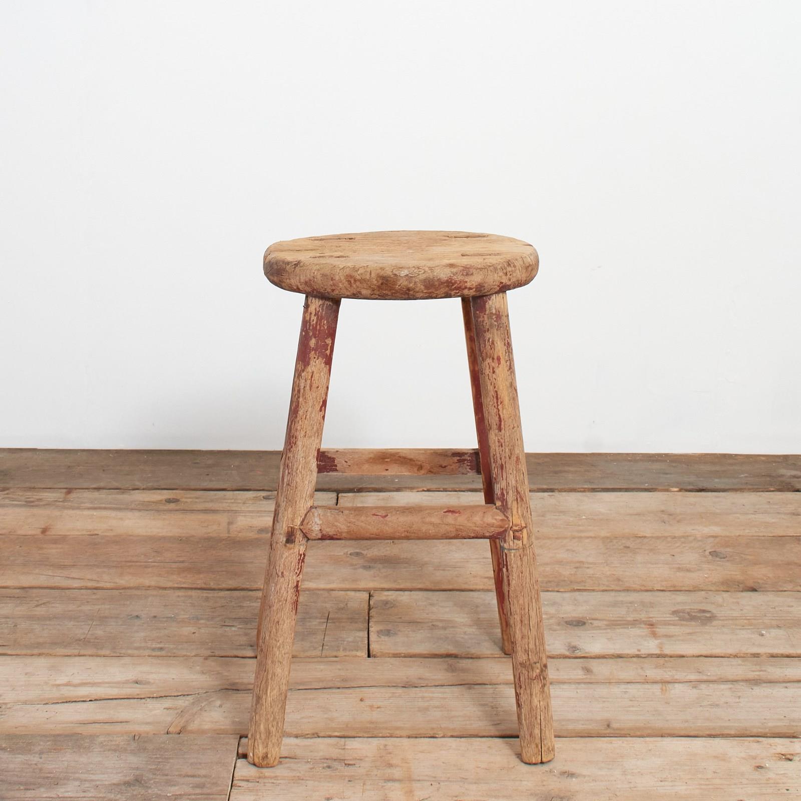 Antique Rustic Round Top Stool – N