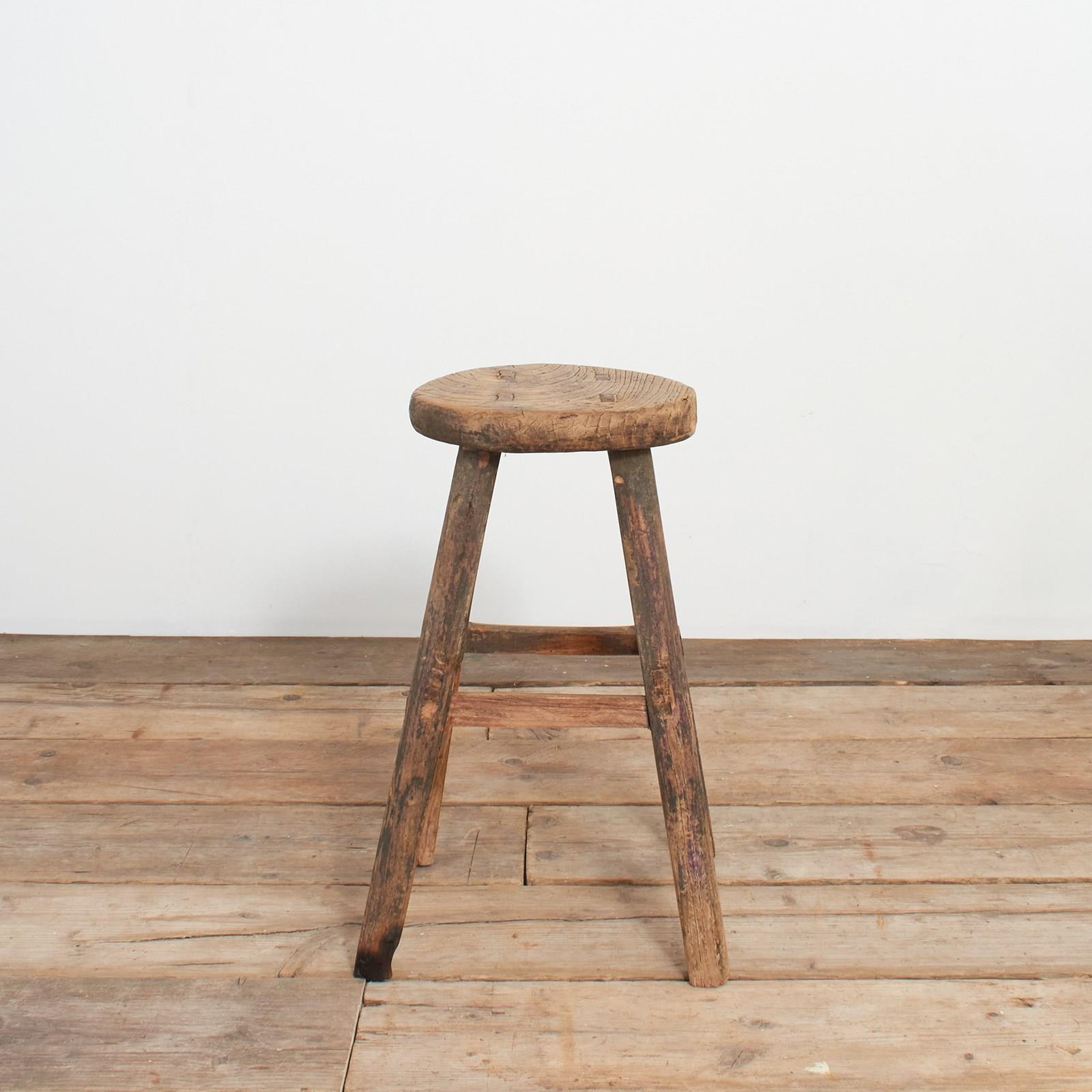 Antique Rustic Round Top Stool – R