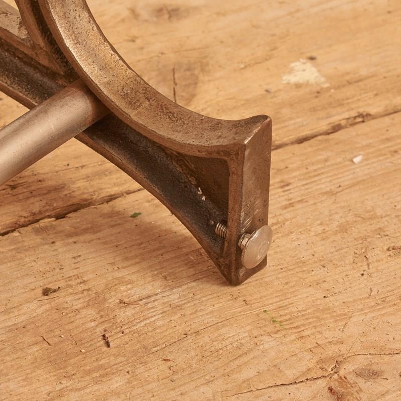 Workshop Report: Good condition, the hardwood bench top plank has natural wear markings. The bench is solid, the wood and metalwork has been waxed for future protection.