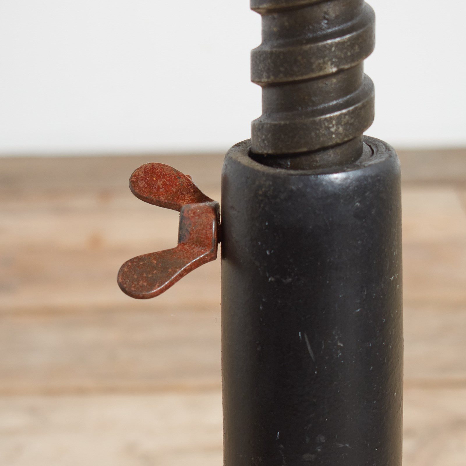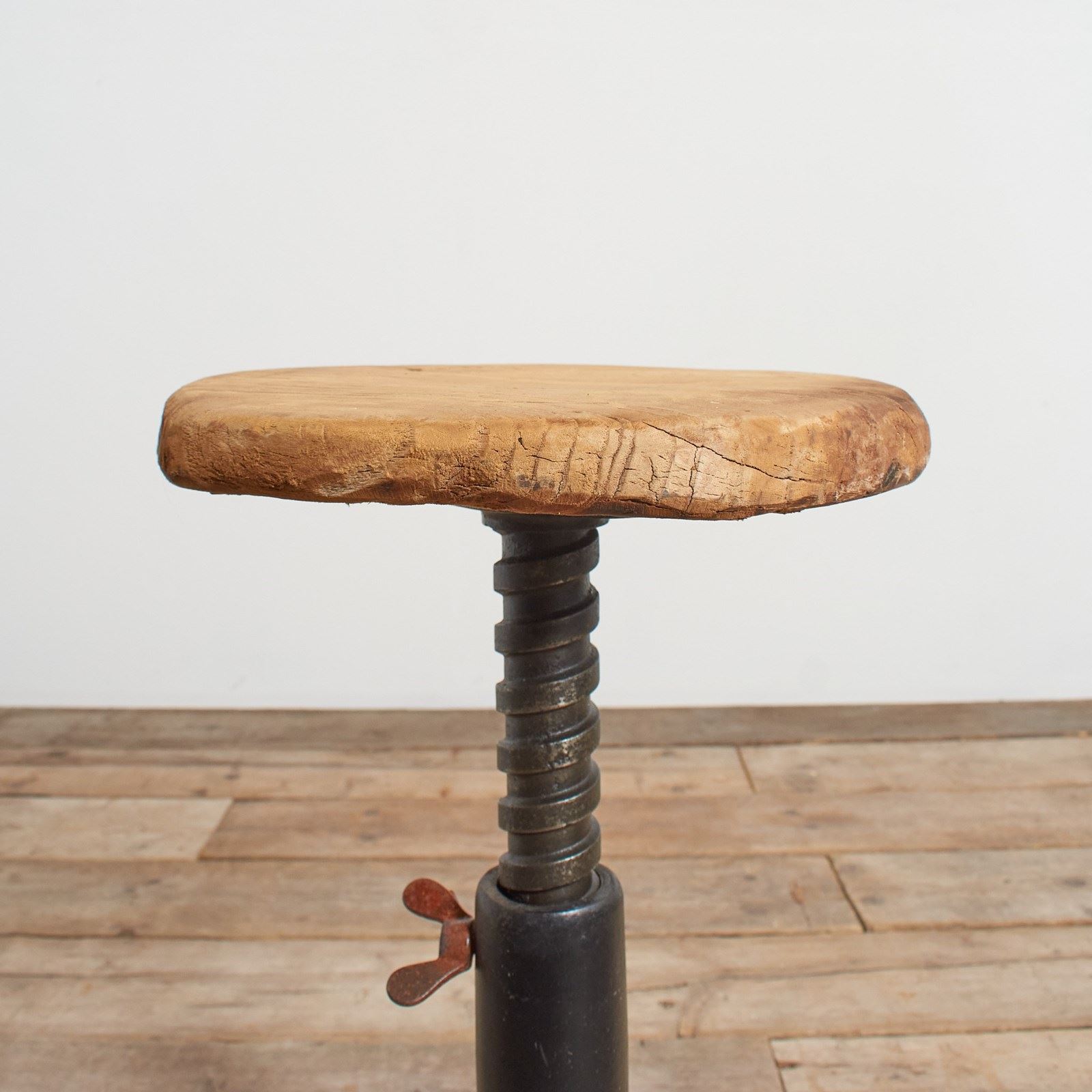 Workshop Report: Overall vintage condition, cast metal in original condition with a repair to the legs, the stool retains its locking wing nuts, wood and metalwork waxed for future protection. There are some markings to the wooden seat in places.