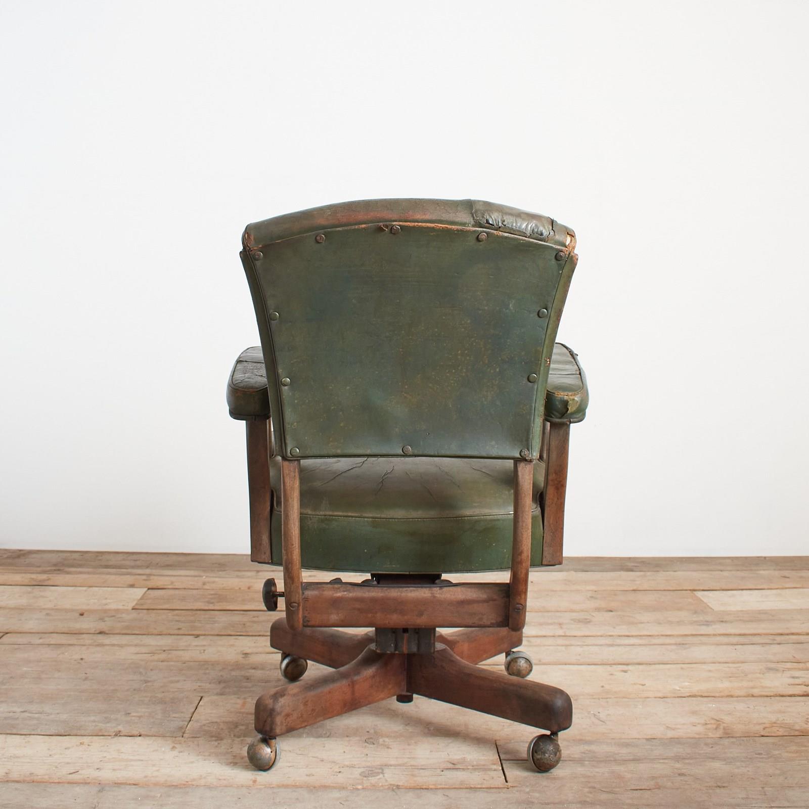 Antique US Military Leather Swivel Office Desk Chair