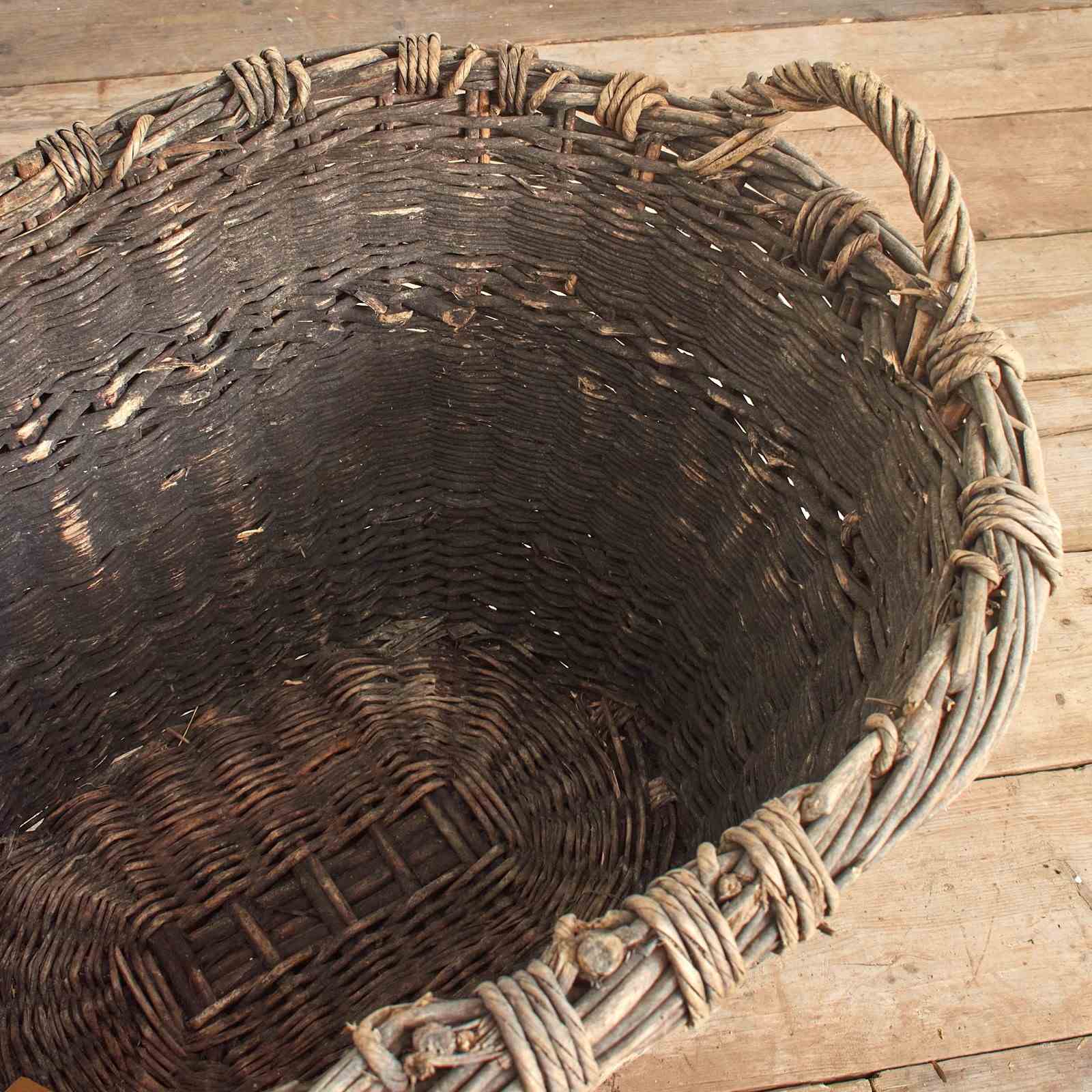 Large Antique French Champagne Grape Harvest Log Basket -AB