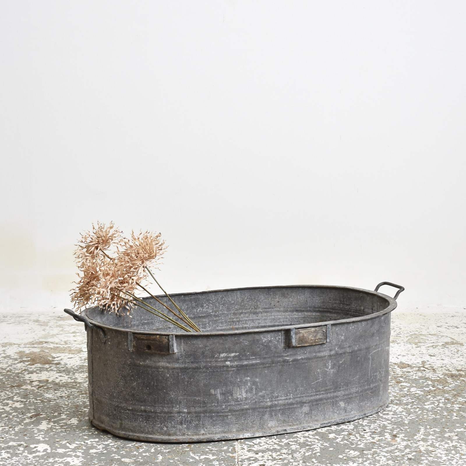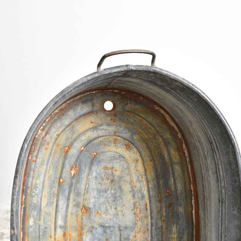 Large Oval Vintage Galvanised Bath Garden Planter – T