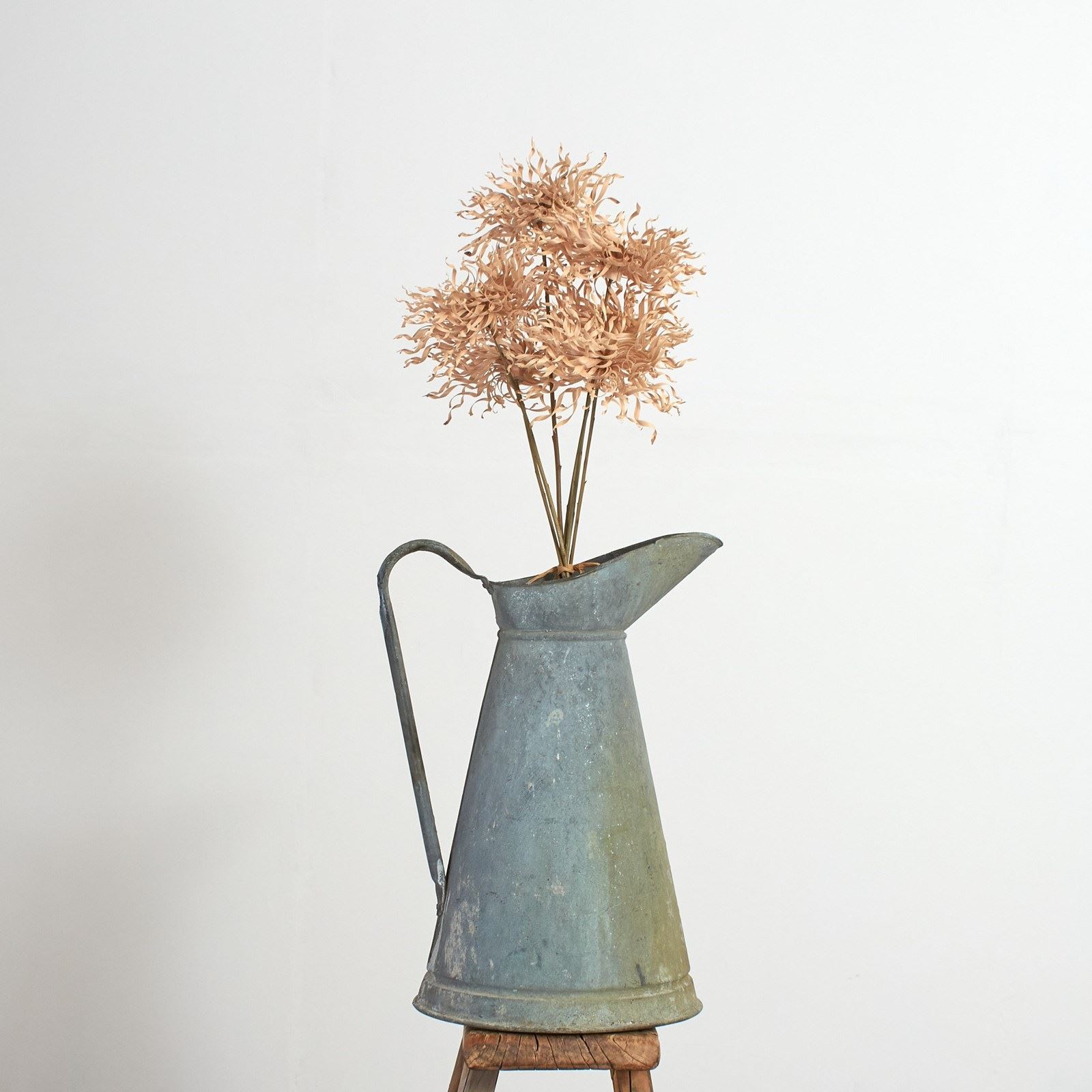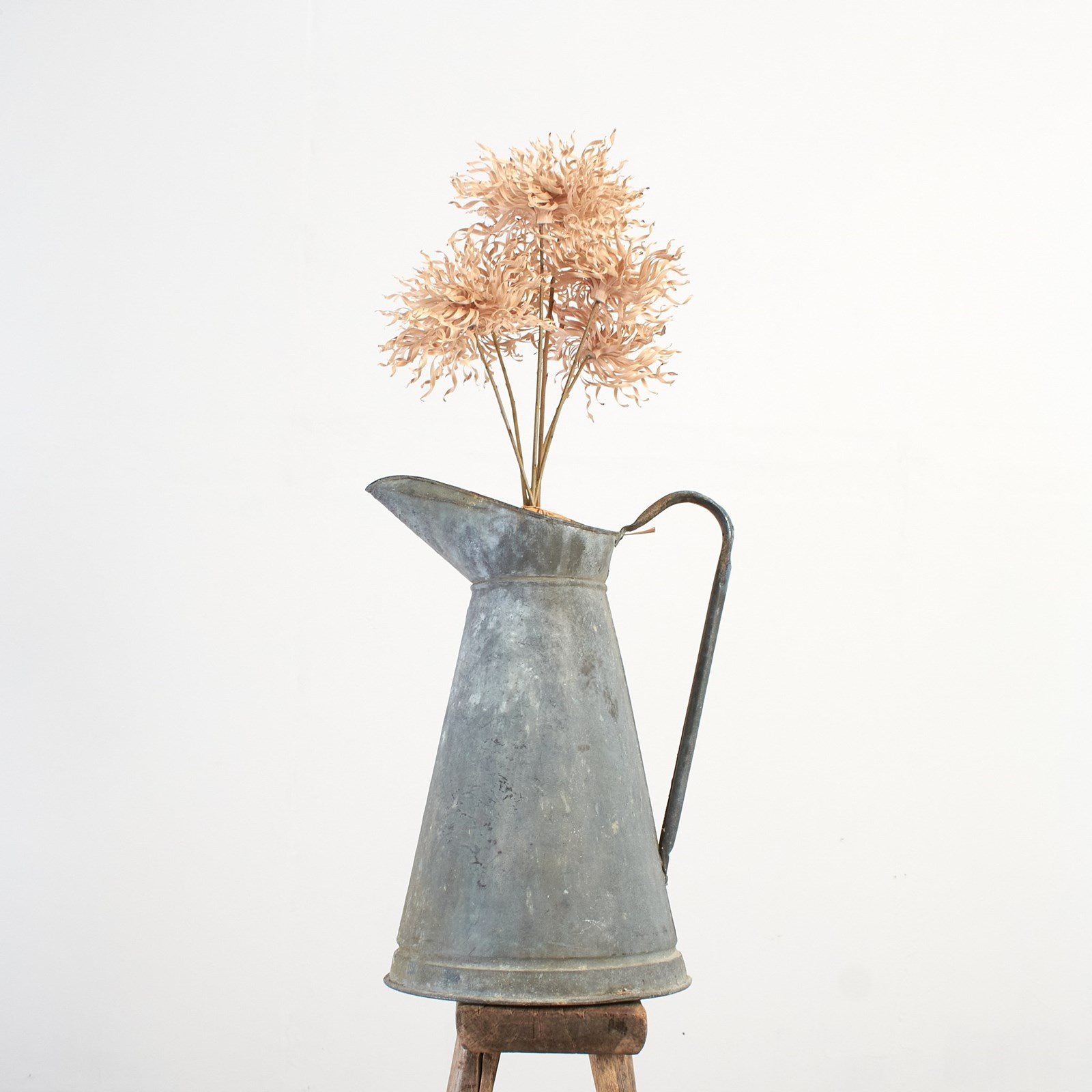 A fabulous galvanised jug. Perfect for adding rustic charm to an interior or exterior. It would make a stunning flower vase and is watertight.