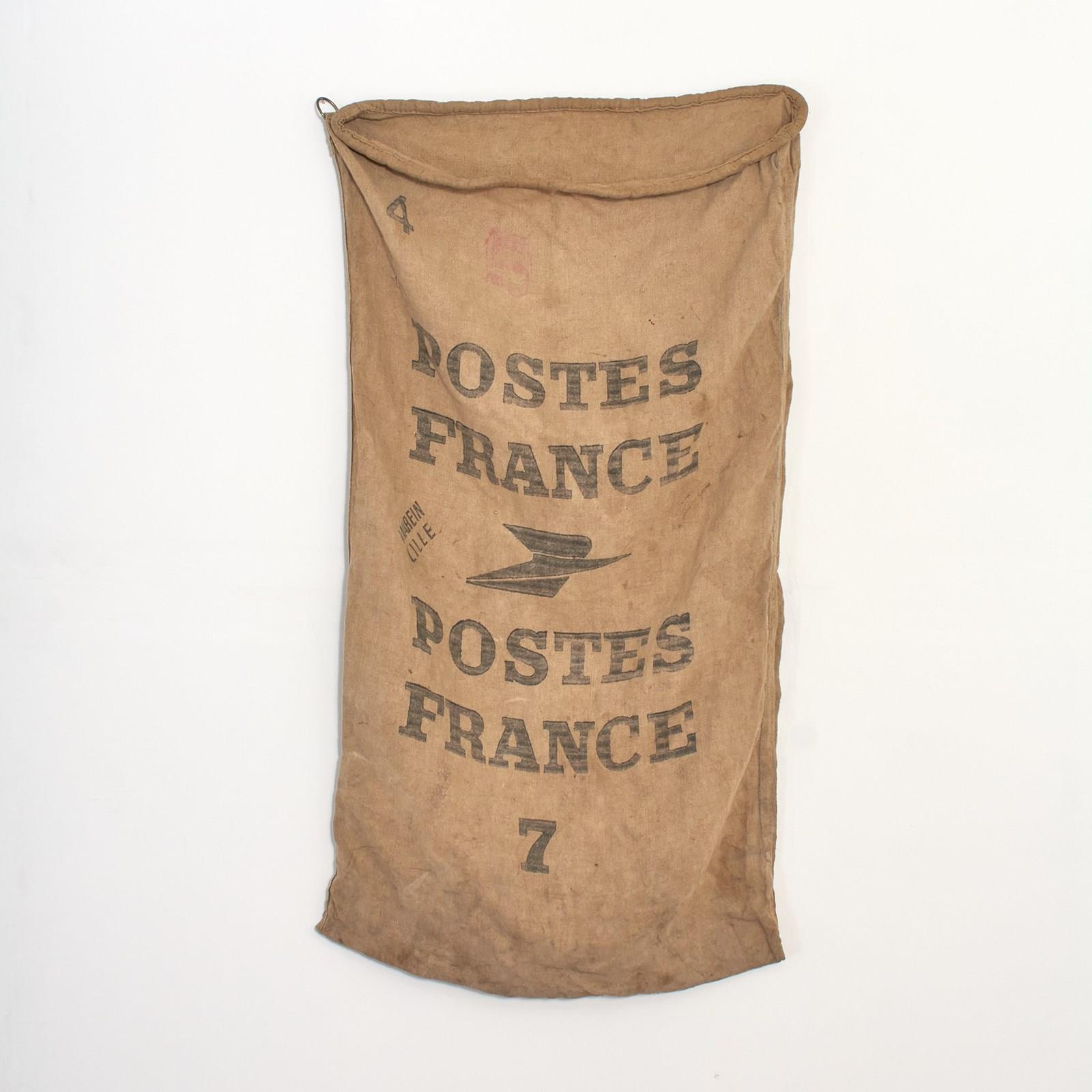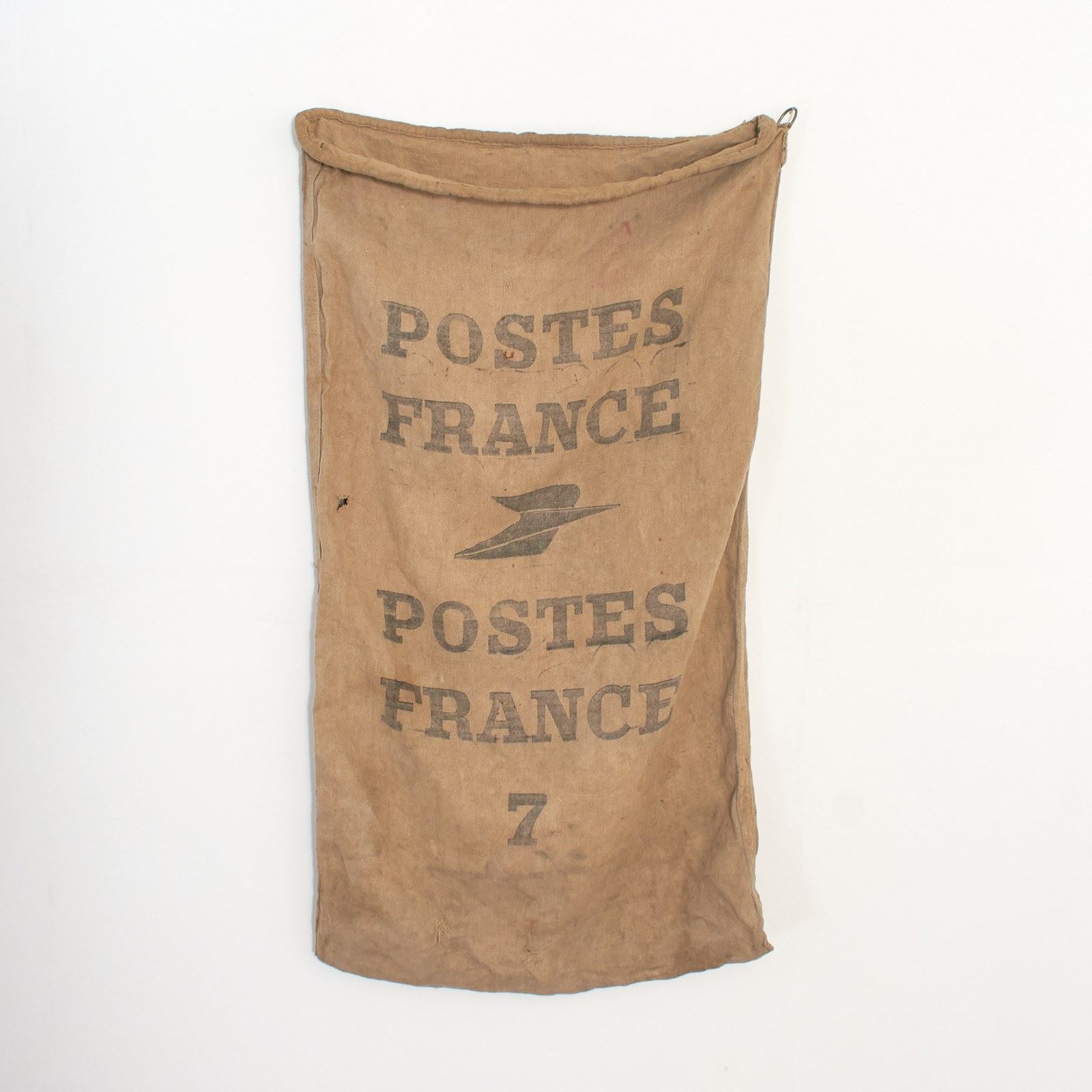 A fantastic original French postal sack with metal hanging loop at the top of one side. These look great as wall art, a decorative throw or are popular to make into cushions.