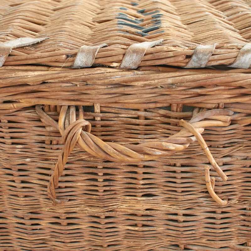Workshop Report: The wicker is in good vintage condition. There are signs of wear and historical stains on the internal fabric – see photos.