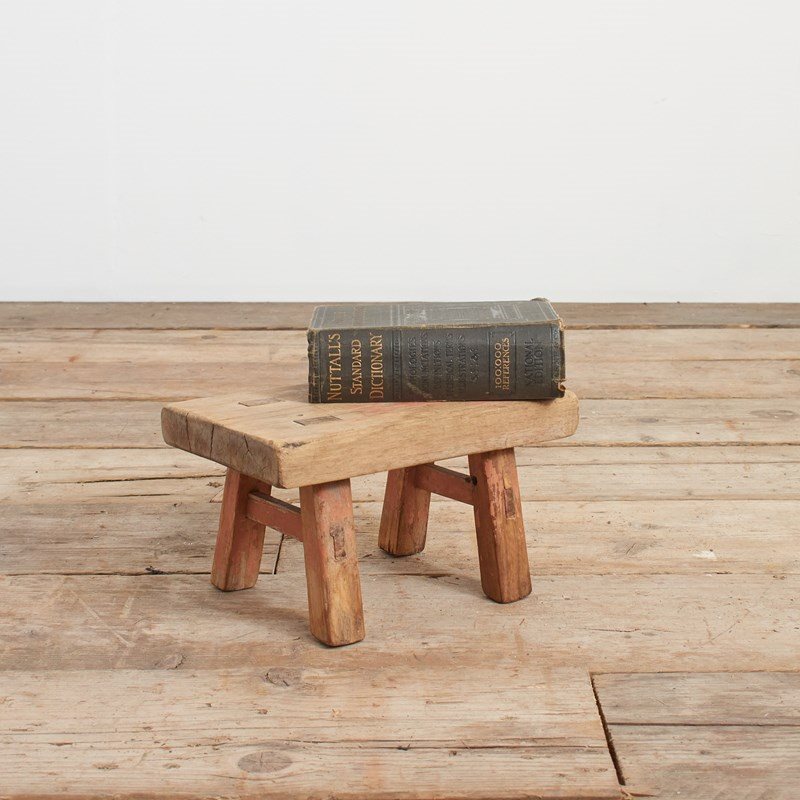 A charming vintage wooden elm stool. These elm stools are solid, lovely original patina and character with each one being totally unique. Traditional construction joints the stools are primarily constructed from elm with some stretchers oak or pine. Perfect as a plant/lamp stand or small side table next to a chair.