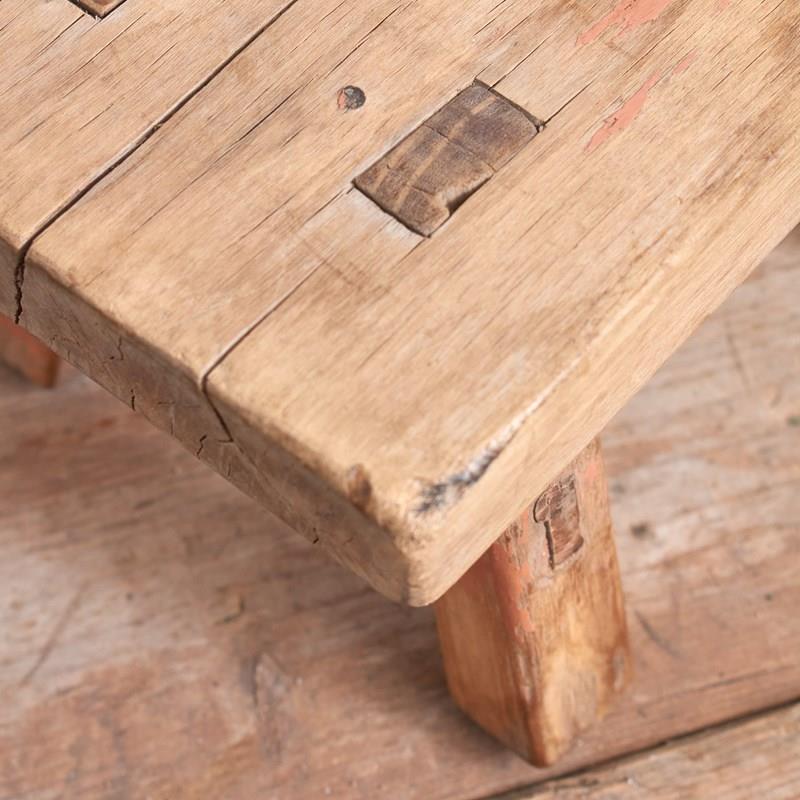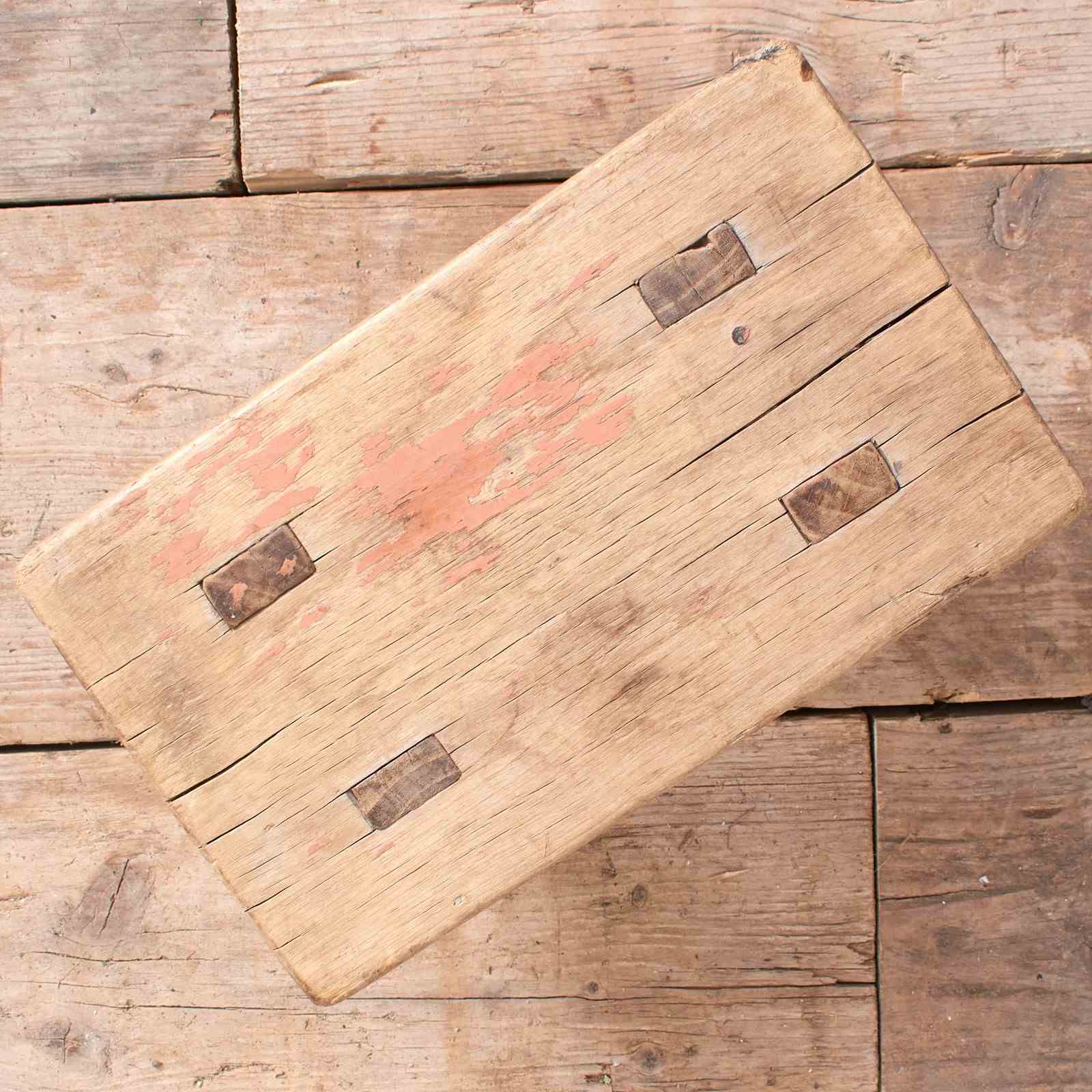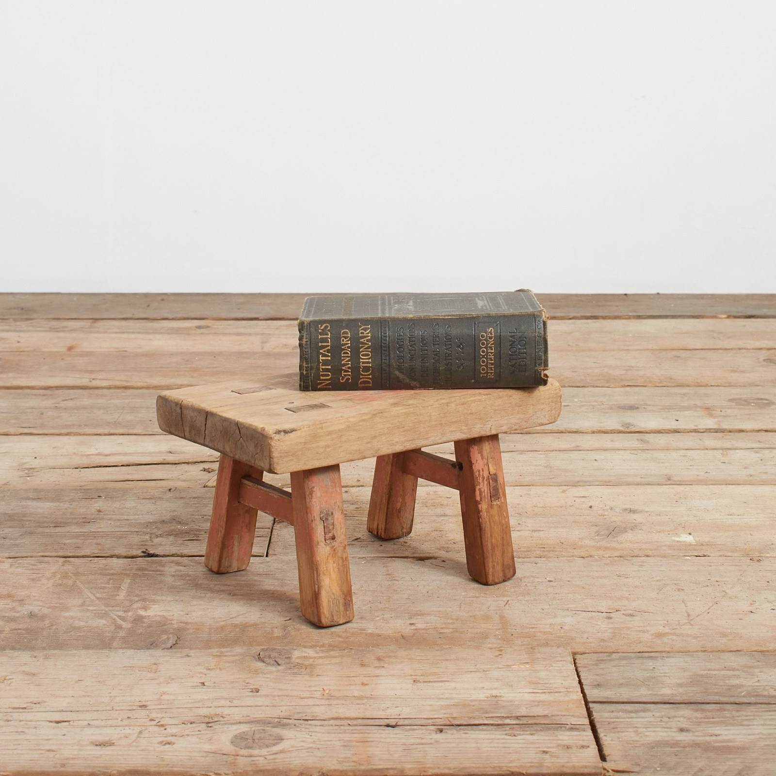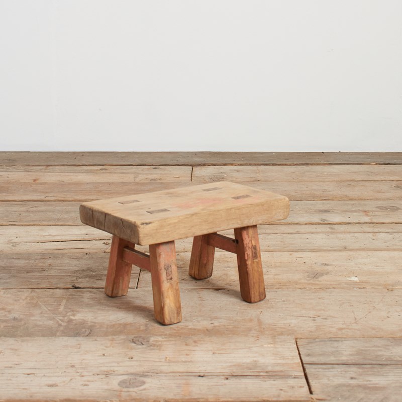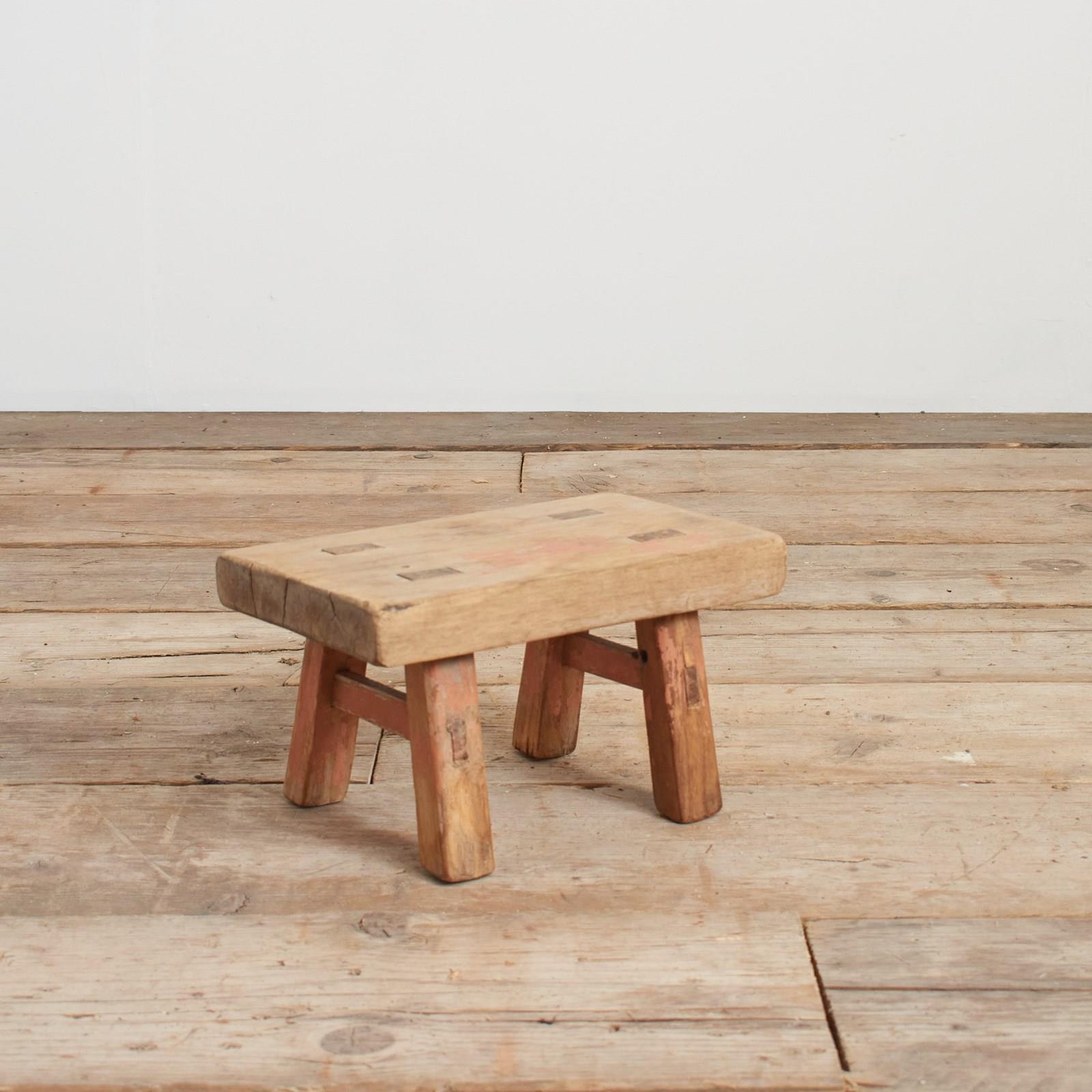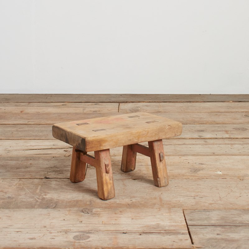 Workshop Report: Overall rustic condition, structurally sound, some historical repairs in places, various imperfections which add to the character. A few paint remains on some stools may be visible.