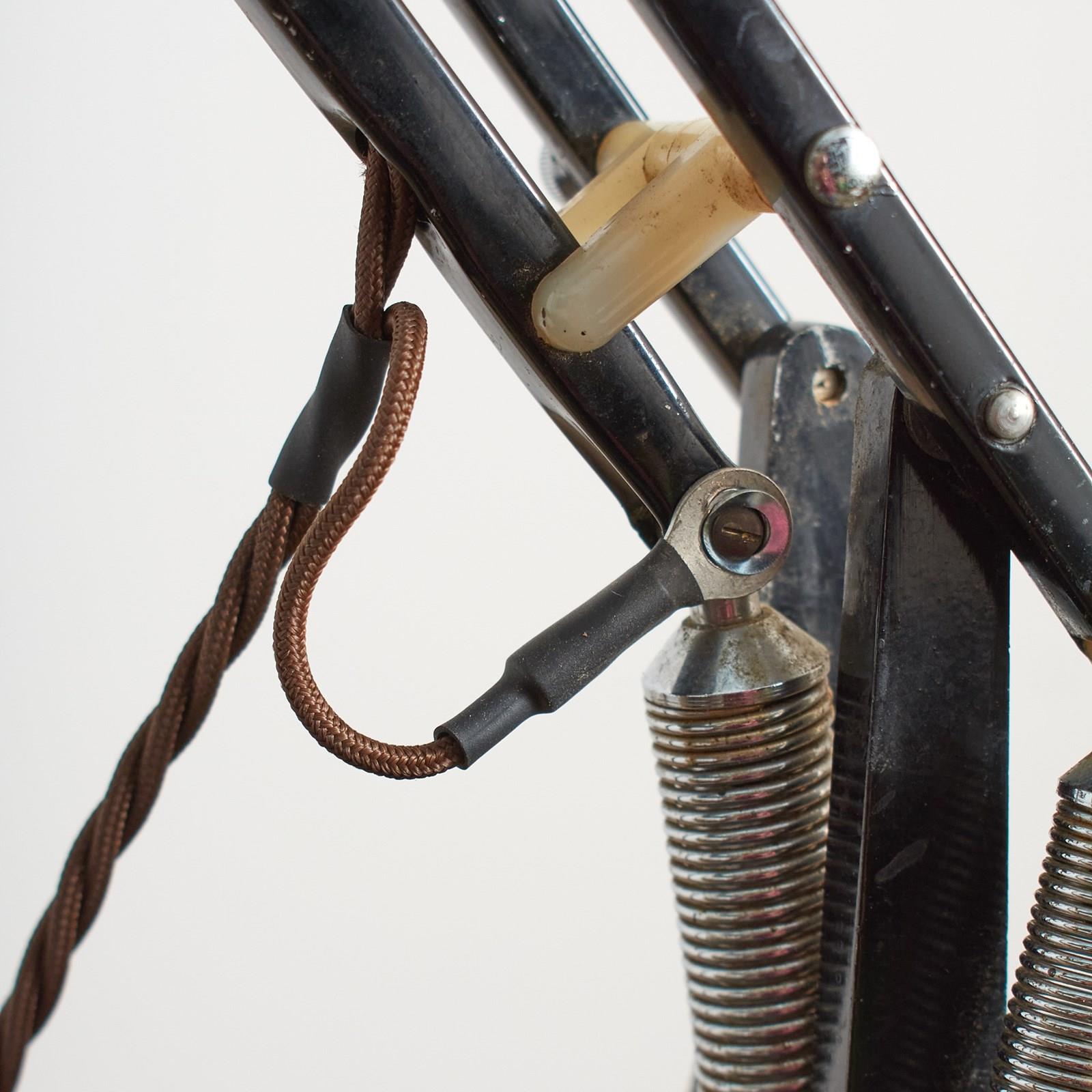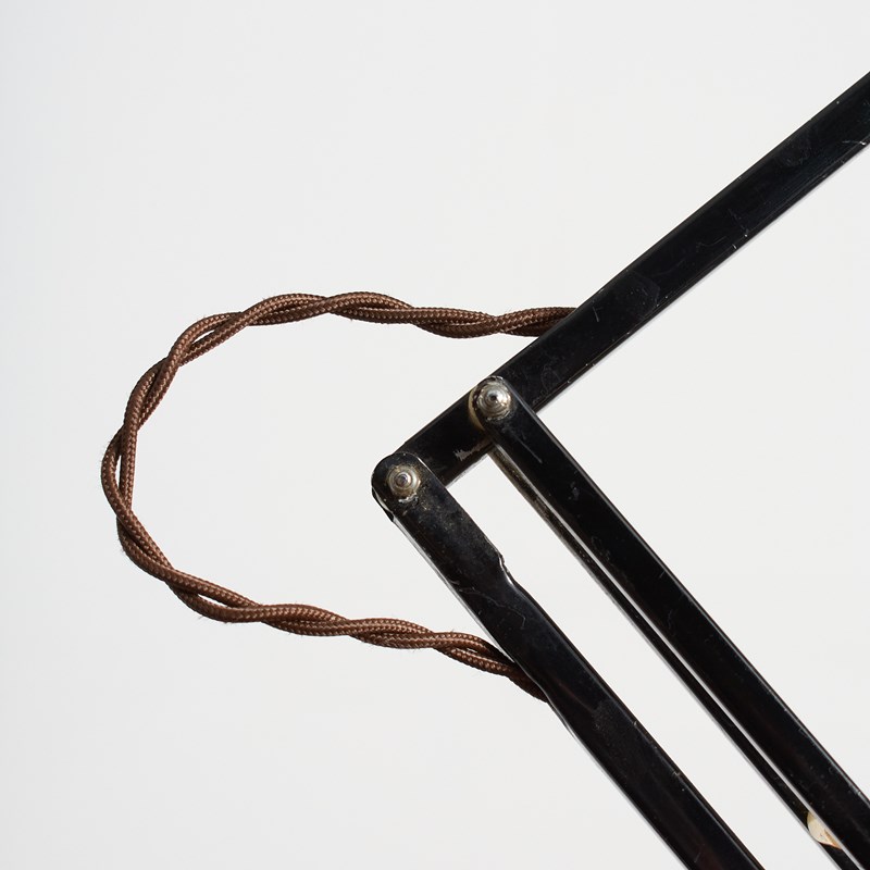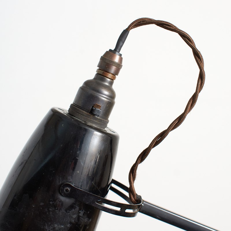 Workshop Report: This lamp is in its original condition, lightly cleaned and waxed. There is some paint wear in places and a few minor dings to the shade, The Lamp retains its original black paint. It has been rewired with twisted brown flex and a CE certified switched bayonet bulbholder and 3 pin UK Plug. Lamp has been PAT tested.
