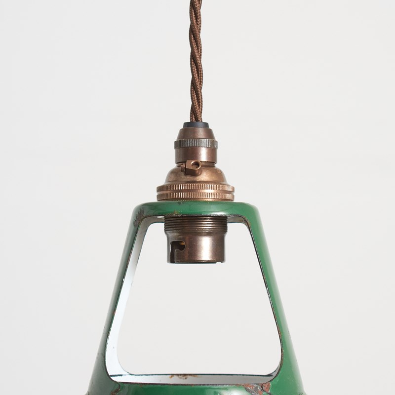 Workshop Report: Overall very good, some minor enamel blemishes around the inner neck where they have been stacked, new old stock – all shades retain their original labels. Supplied with new CE Certified bayonet B22 lamp holders and 1m of brown traditional twisted cable.