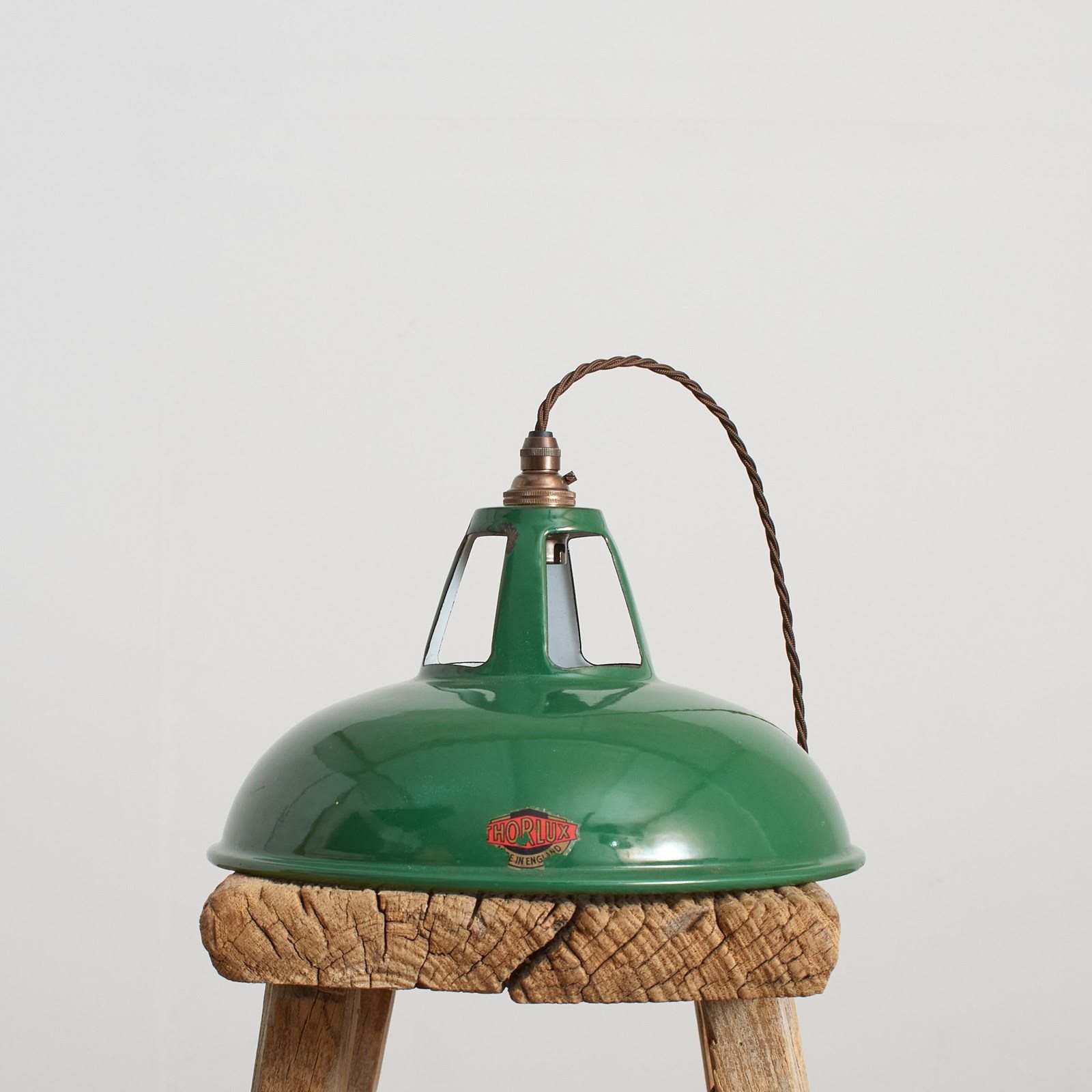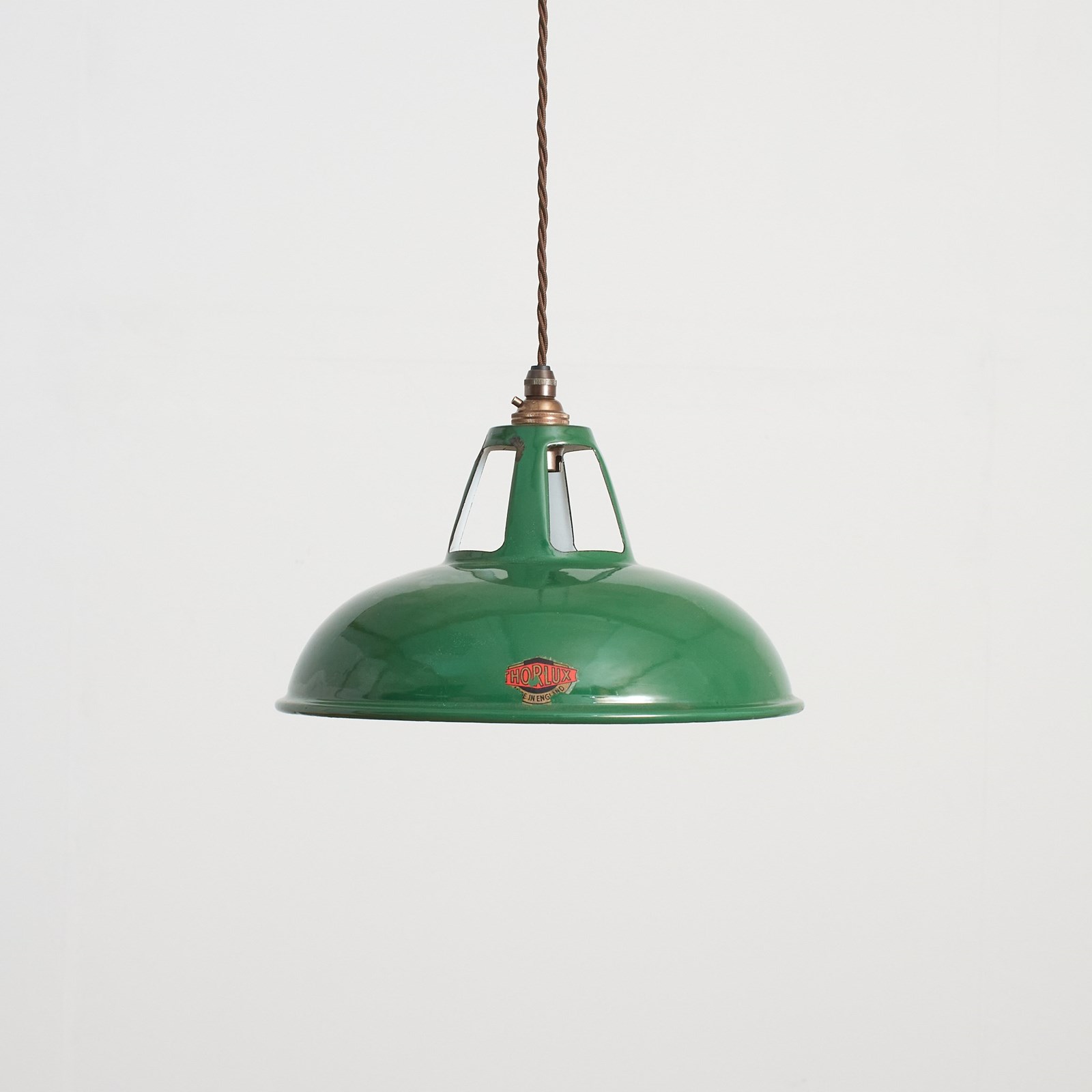 Original Antique 11″ Green Thorlux Enamel Pendant Light