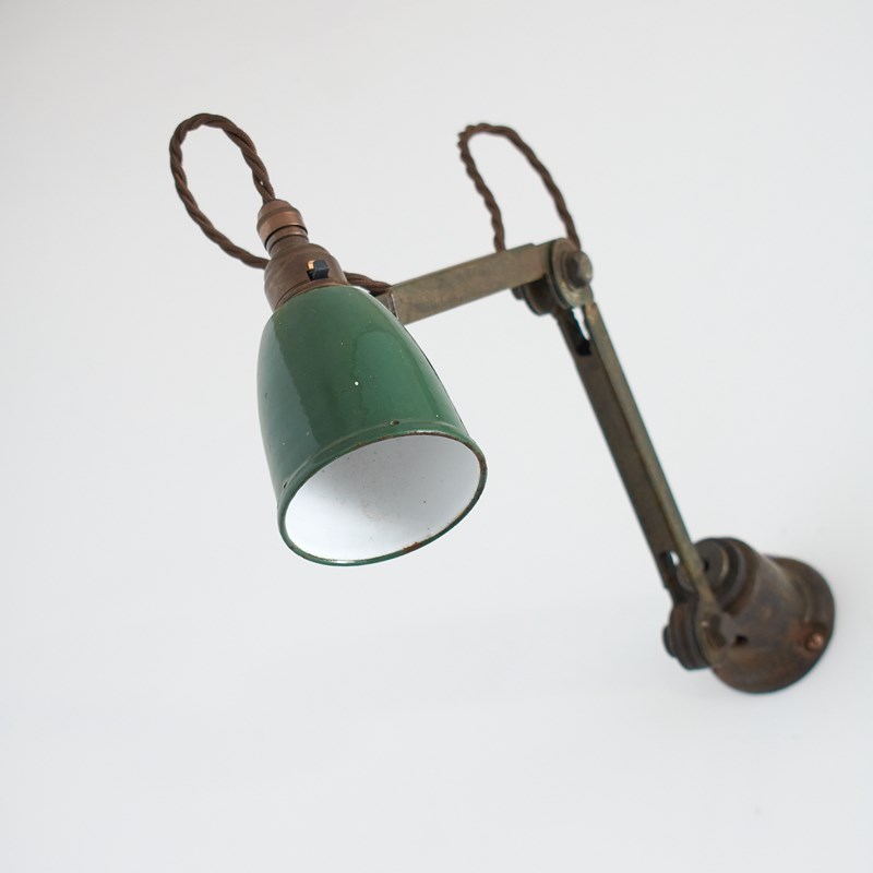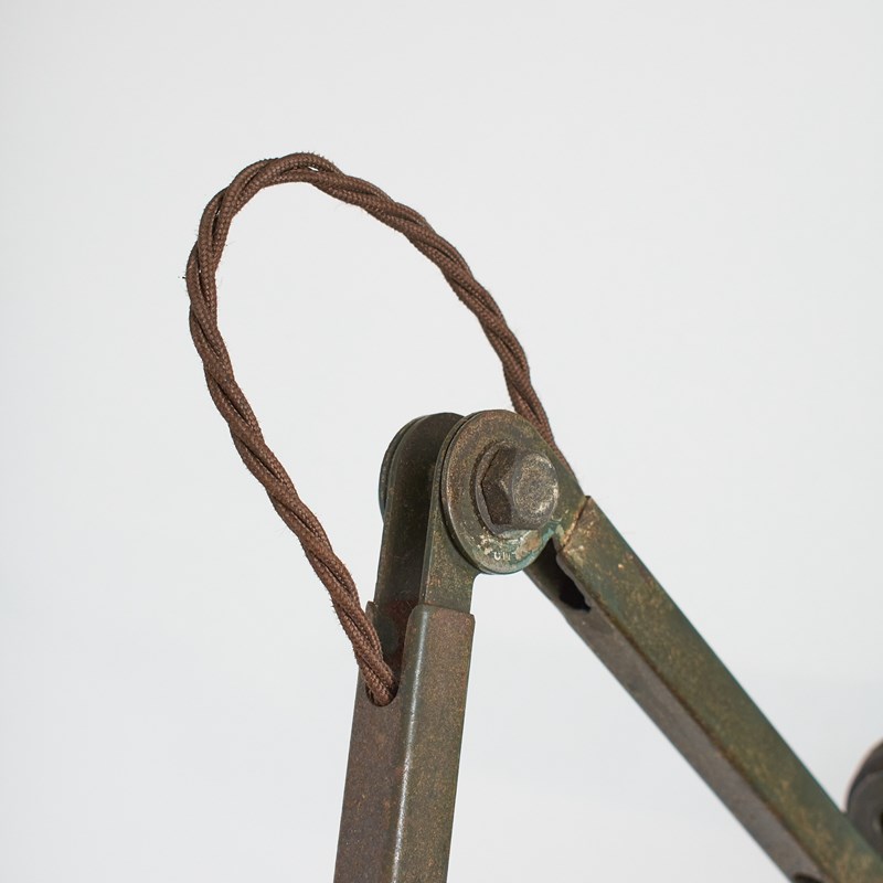 Workshop Report: This lamp is in its original condition, lightly cleaned and waxed. There is some paint wear in places, The Lamp retains its original paint and green enamel to the shade. It has been rewired with twisted brown flex and a CE certified bayonet bulbholder. Lamp has been PAT tested.
