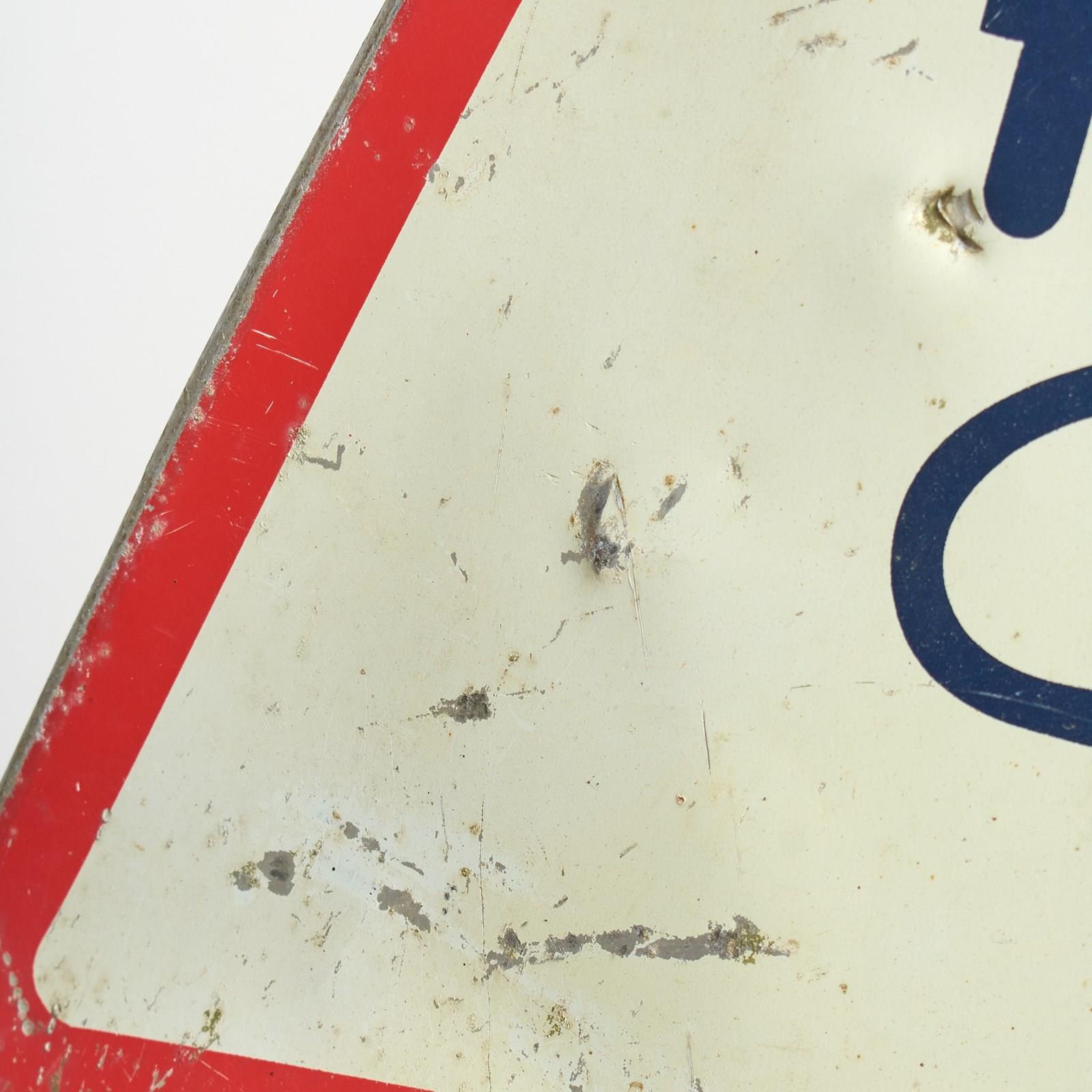 The sign is made from aluminium and has wear and dents to it in places from former weathered use which gives it great character. A fantastic fun item for inside or out on a driveway!