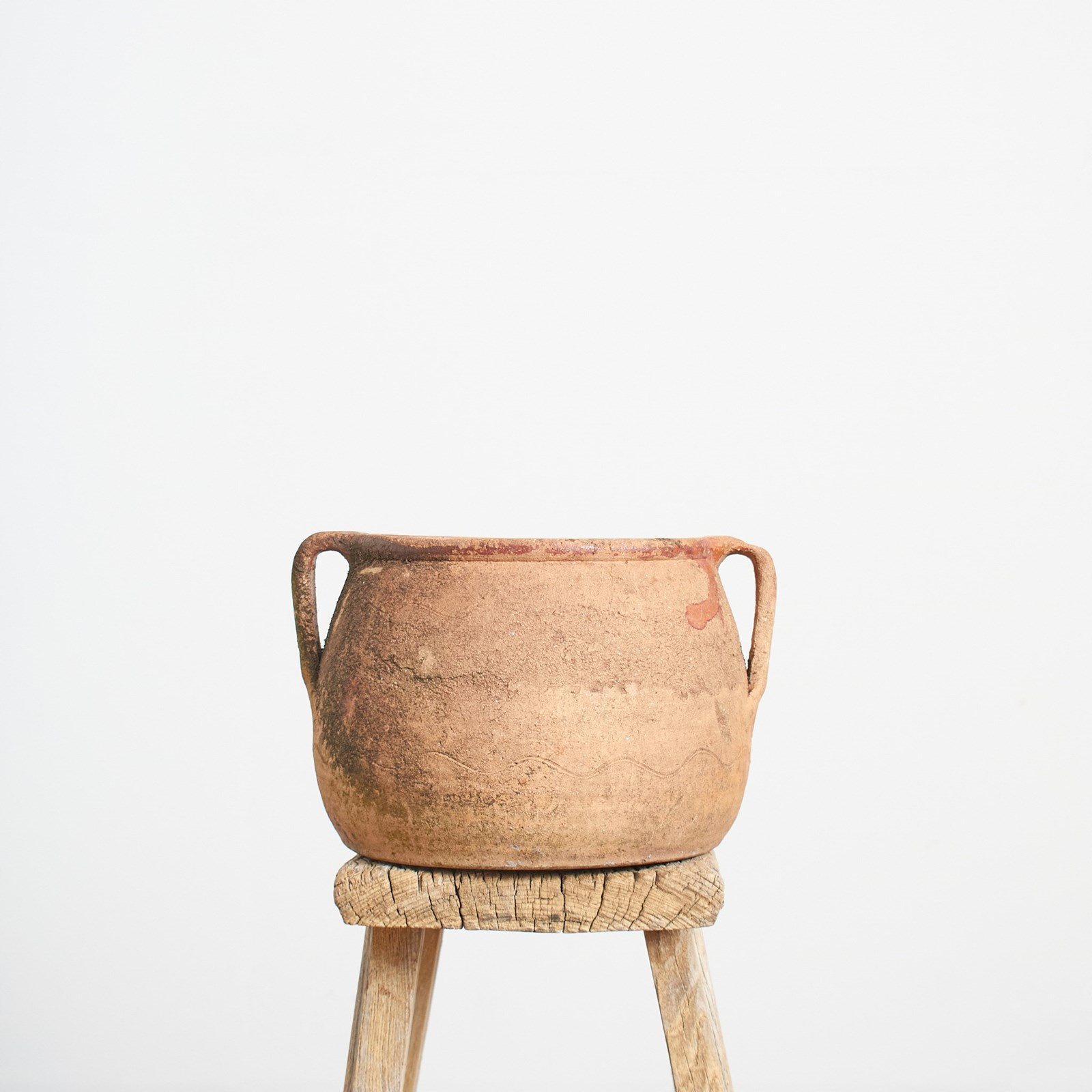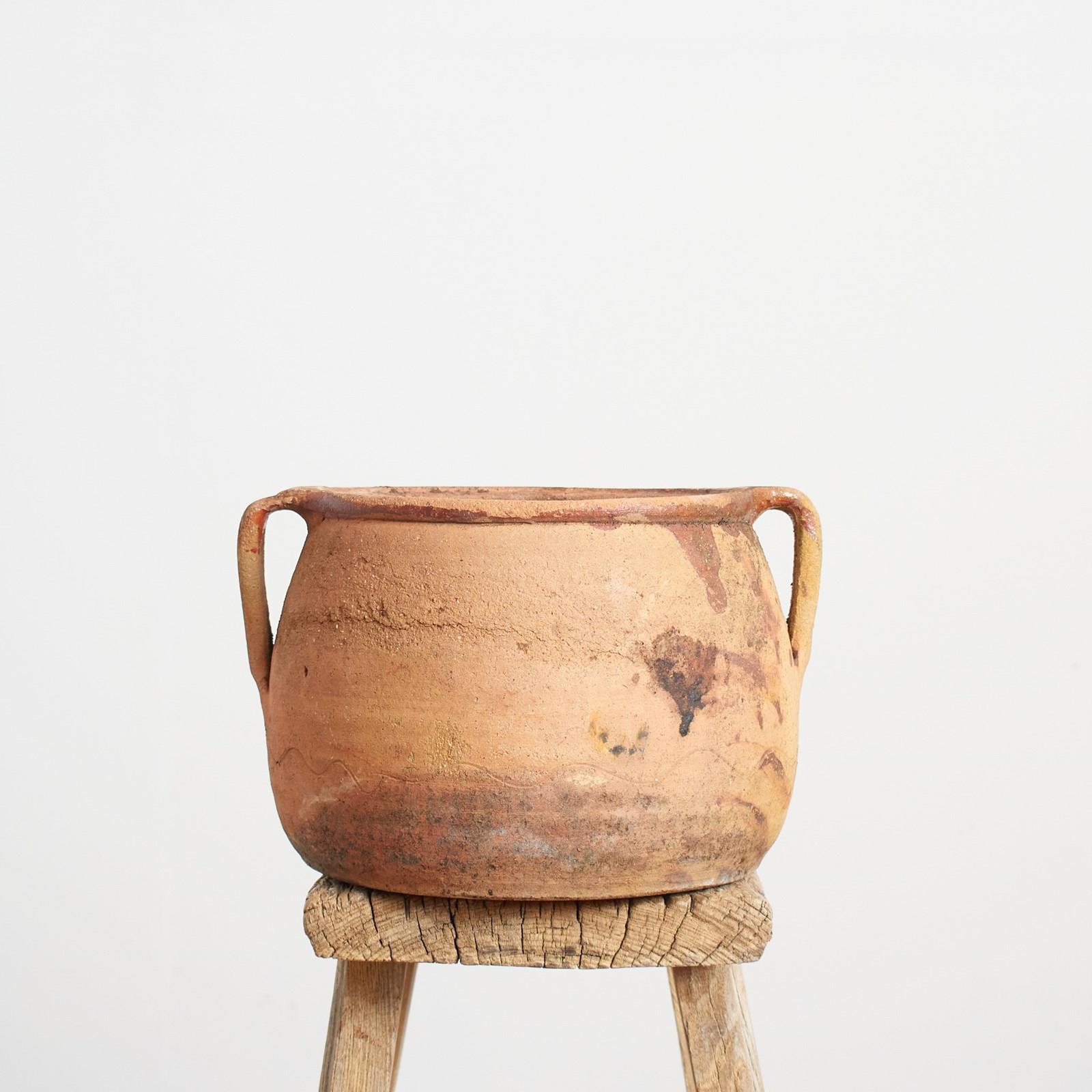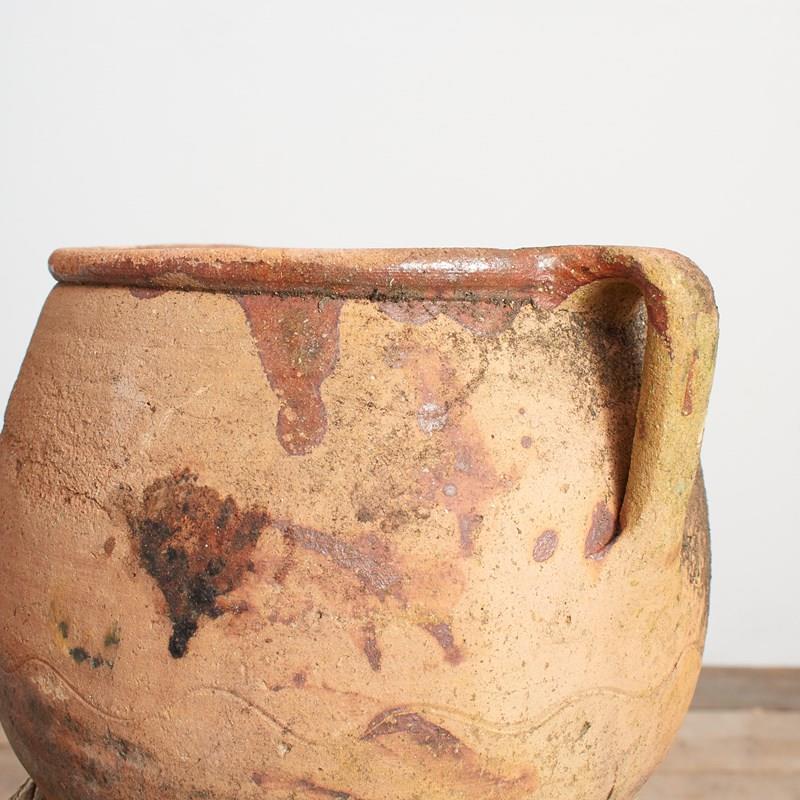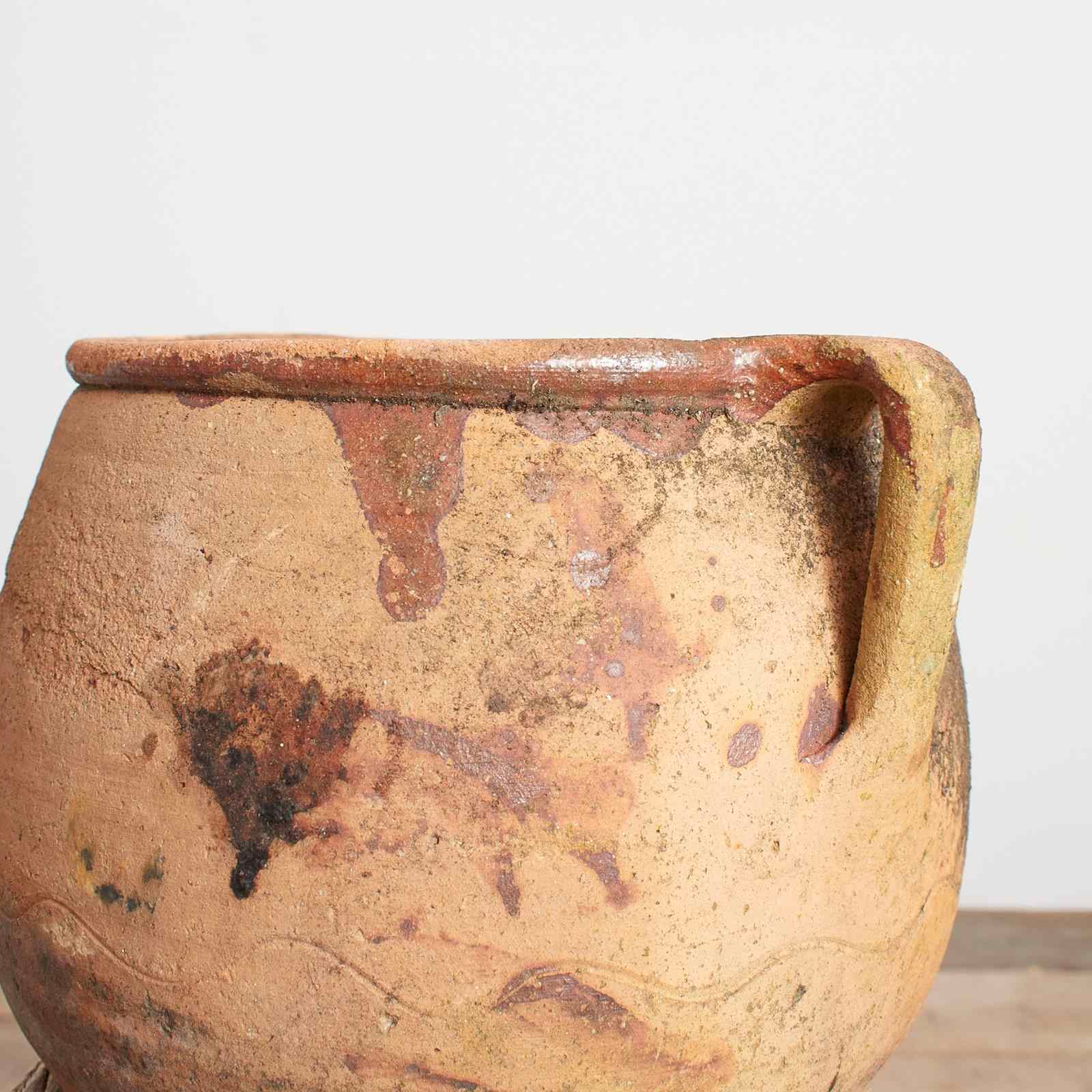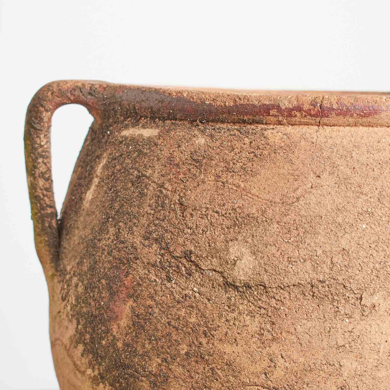 A beautiful antique earthenware terracotta pot which would have originally been used for storage in the Spanish Mediterranean. The pot would have been hand made, it has a handle on each side to assist with carrying.