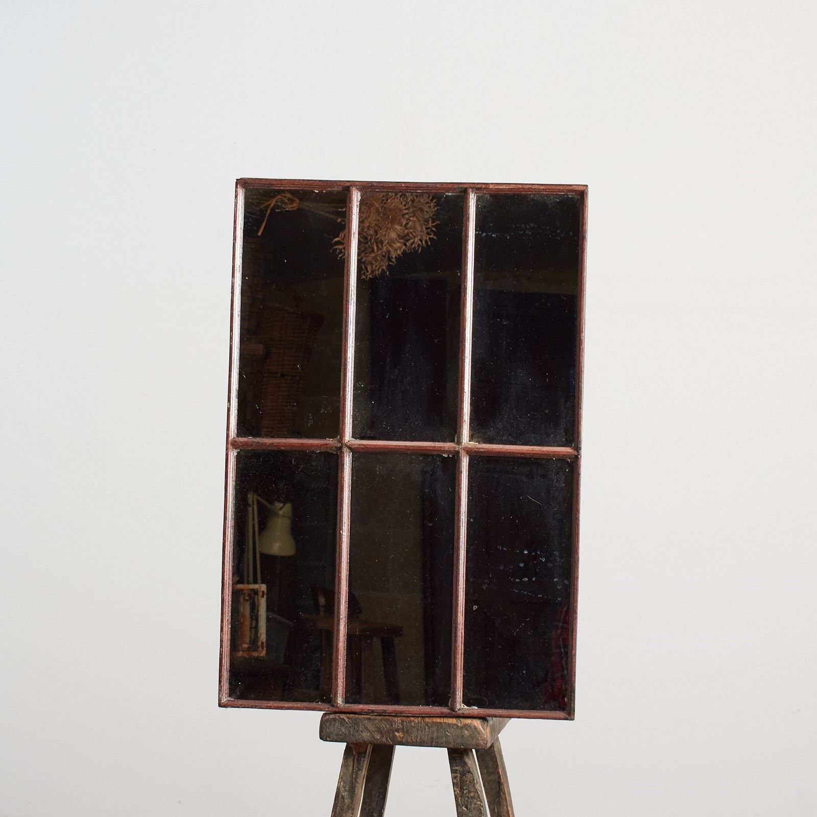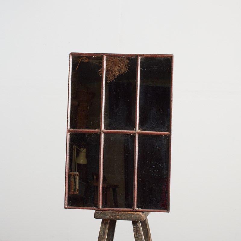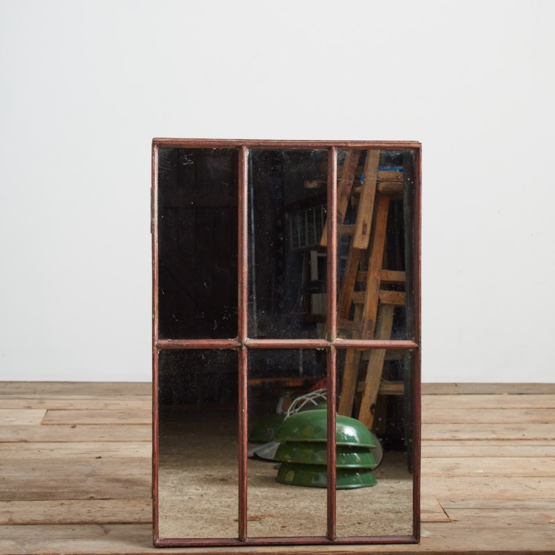 An original cast metal factory window which has been re-glazed ready to use as a mirror. The mirror frame is cast metal and has a lovely patina.