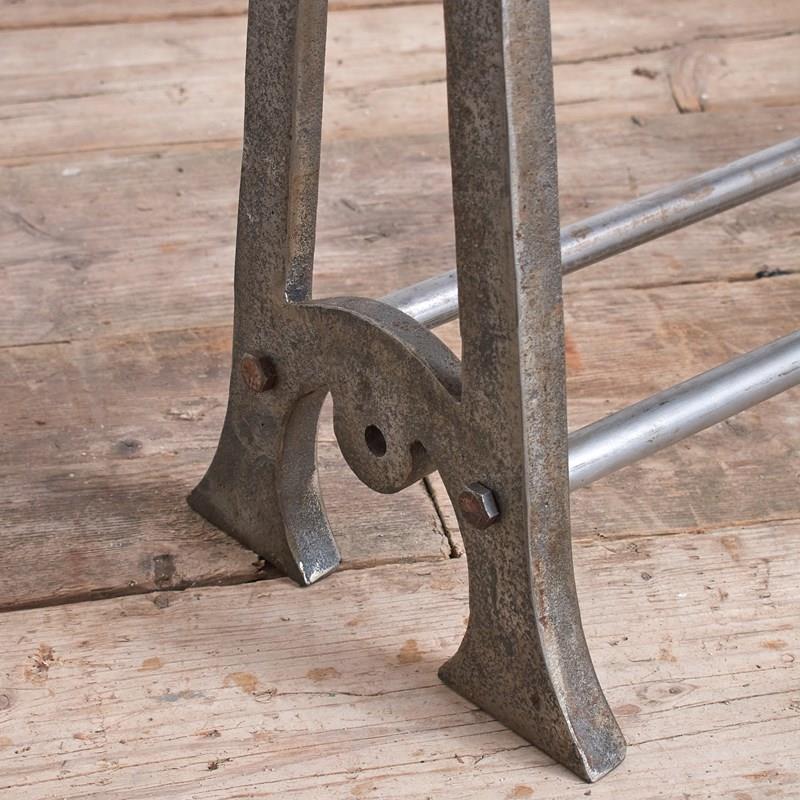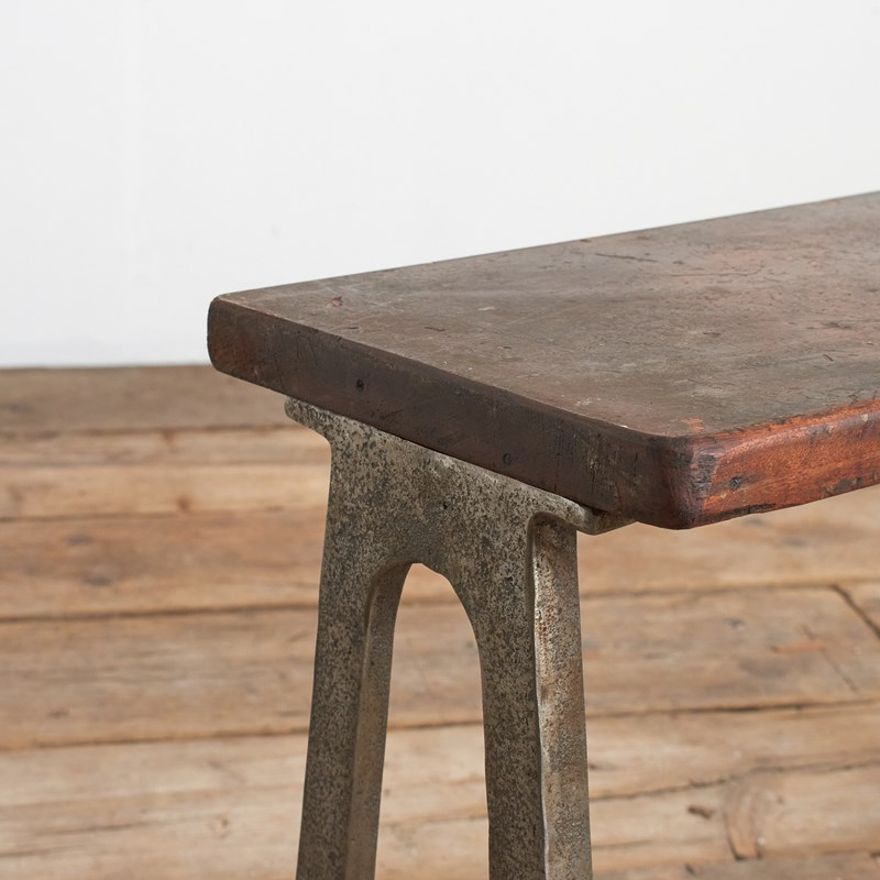 Workshop Report: Good condition, the hardwood bench top plank has natural wear markings. The bench is solid, the wood and metalwork has been waxed for future protection.
