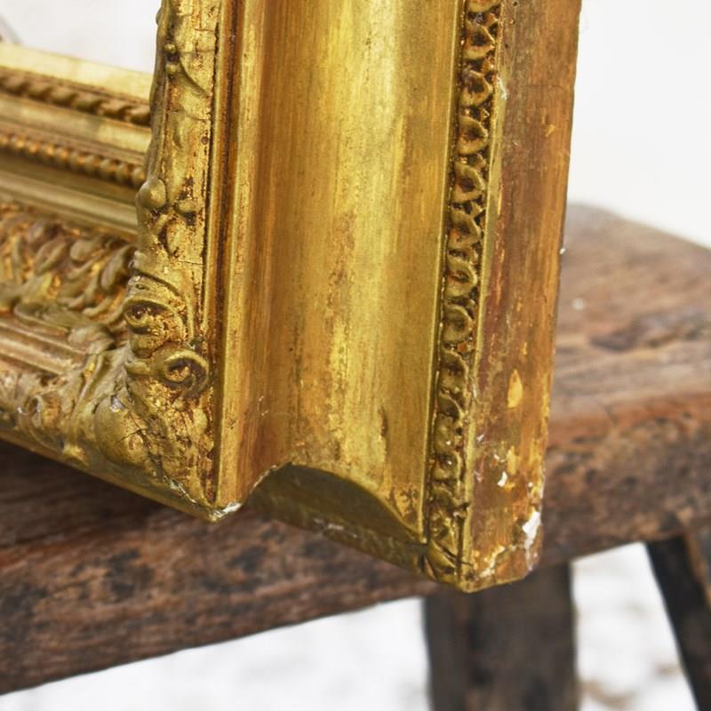 A beautiful gilt picture frame with lovely decorative detail such as the beading and a leaf design (possibly acanthus leaf which suggests the early Victorian or possibly Georgian period). The thickness and depth of the frame are also characteristics of this era.