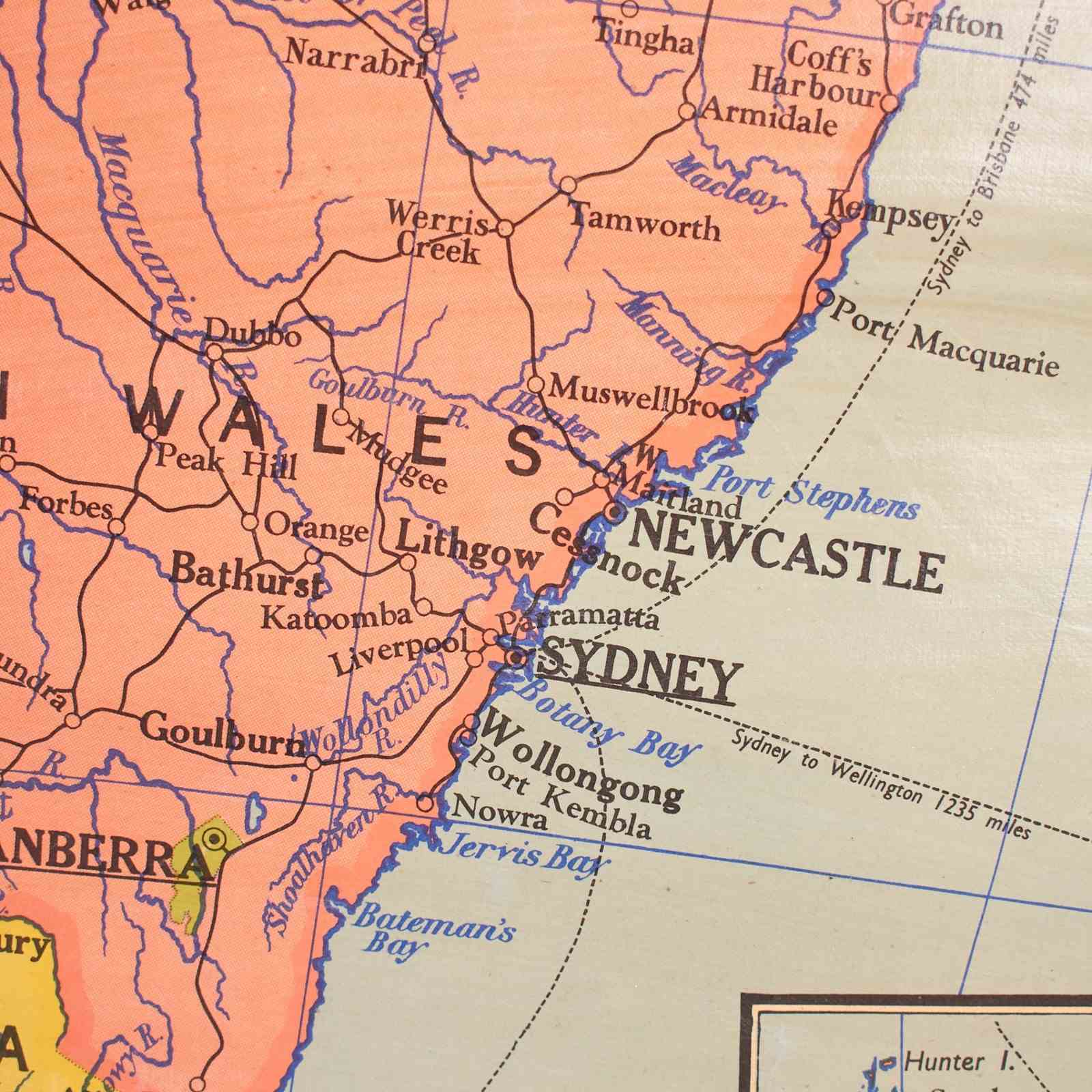 Vintage Australia Wall Map By W & A K Johnston