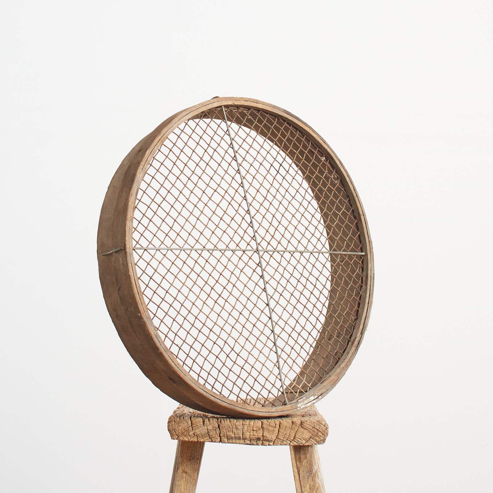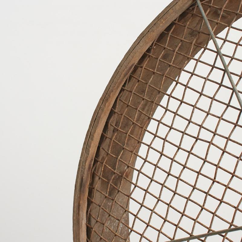 A rustic bentwood garden riddle. Functional for use in the garden but also great as a prop/display in a garden room, shop, cafe, conservatory etc and when grouped together on a wall.