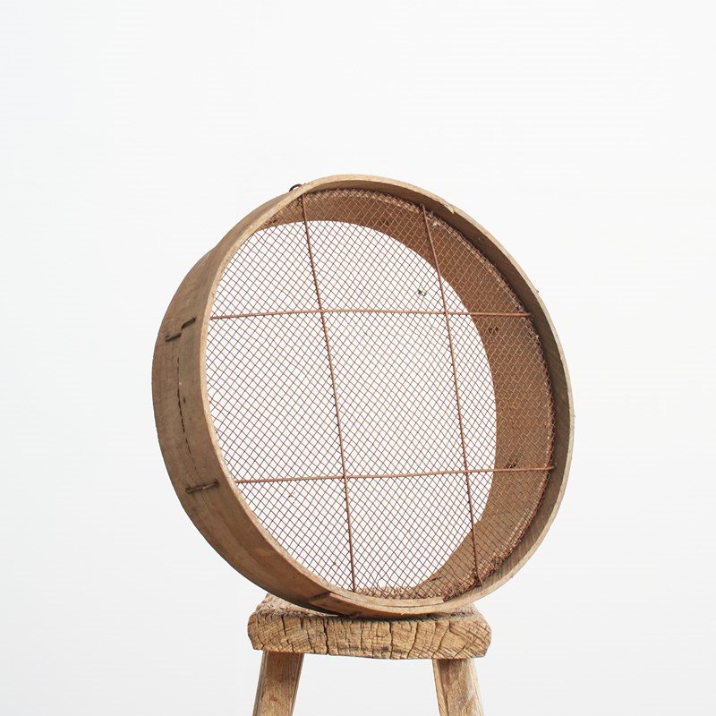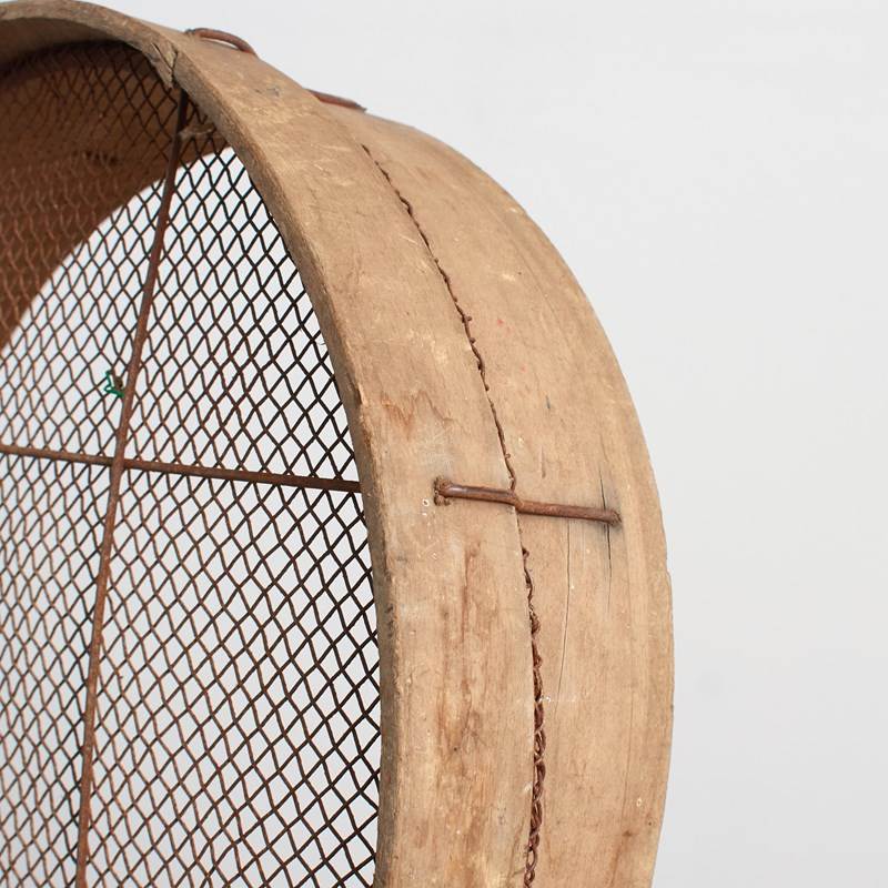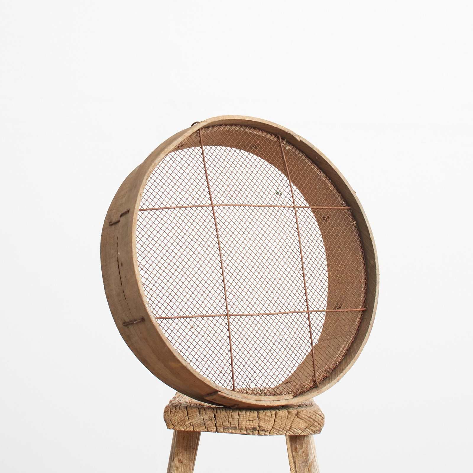 A rustic bentwood garden riddle. Functional for use in the garden but also great as a prop/display in a garden room, shop, cafe, conservatory etc and when grouped together on a wall.