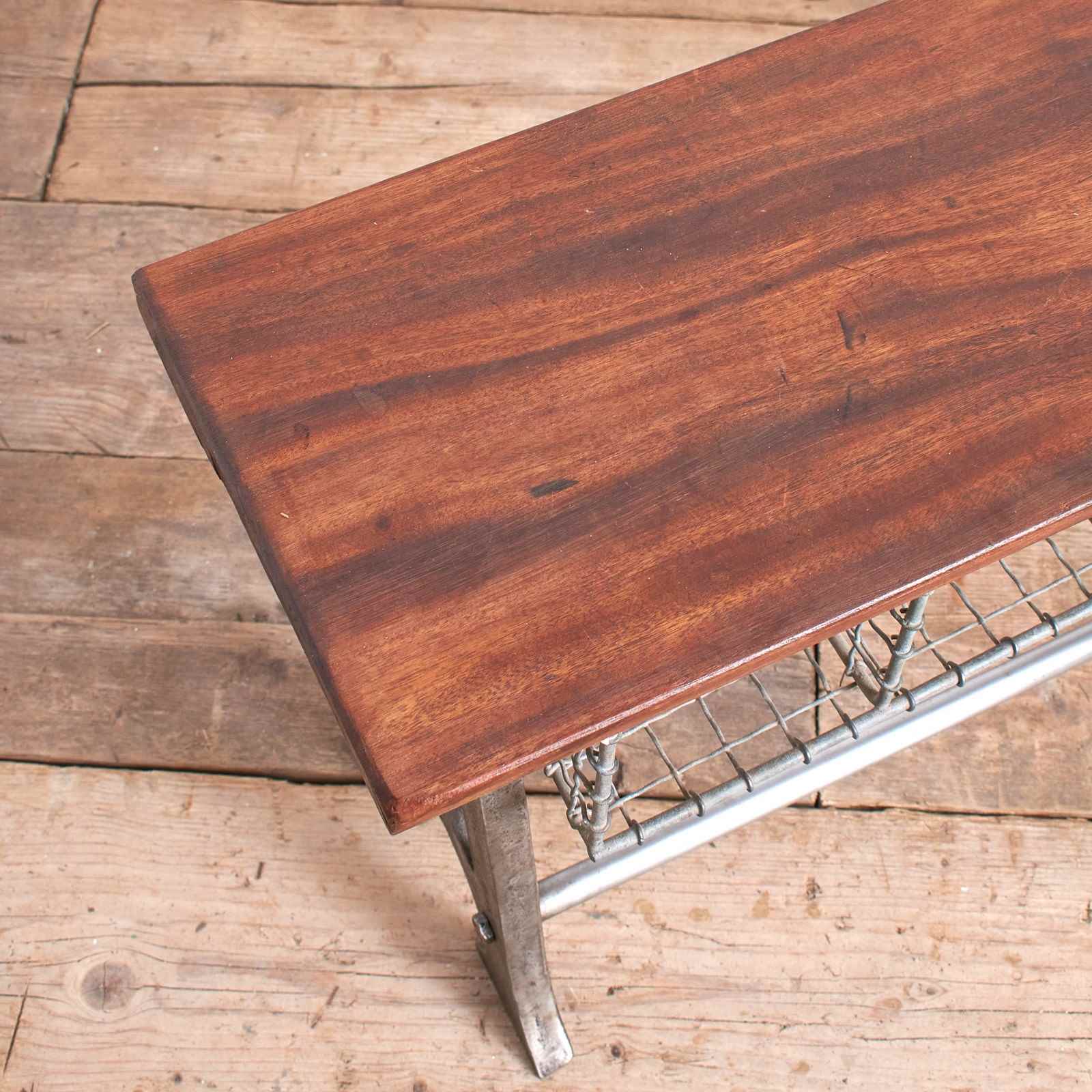 Workshop Report: Good condition, the hardwood bench top plank has natural wear markings. The bench is solid, the wood and metalwork has been waxed for future protection.