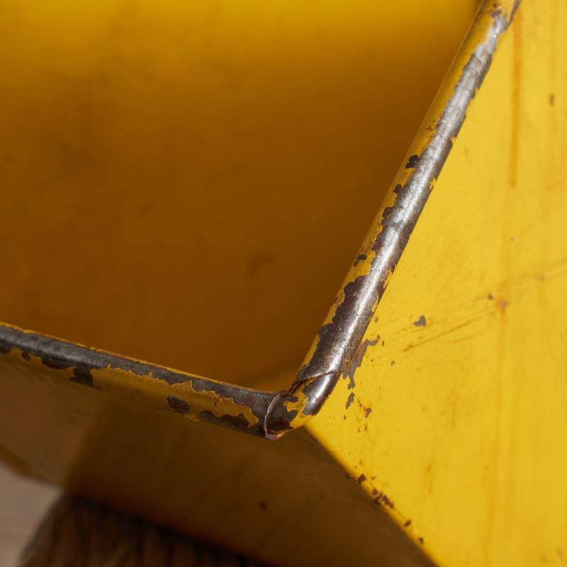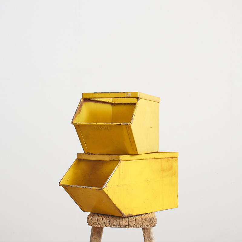 A very useful metal storage crate ideal for storing toys, craft bits, hats and gloves etc. Each crate stacks on top of the other so great for saving space too. The original yellow paint brings a nice bright look to a playroom or workshop.