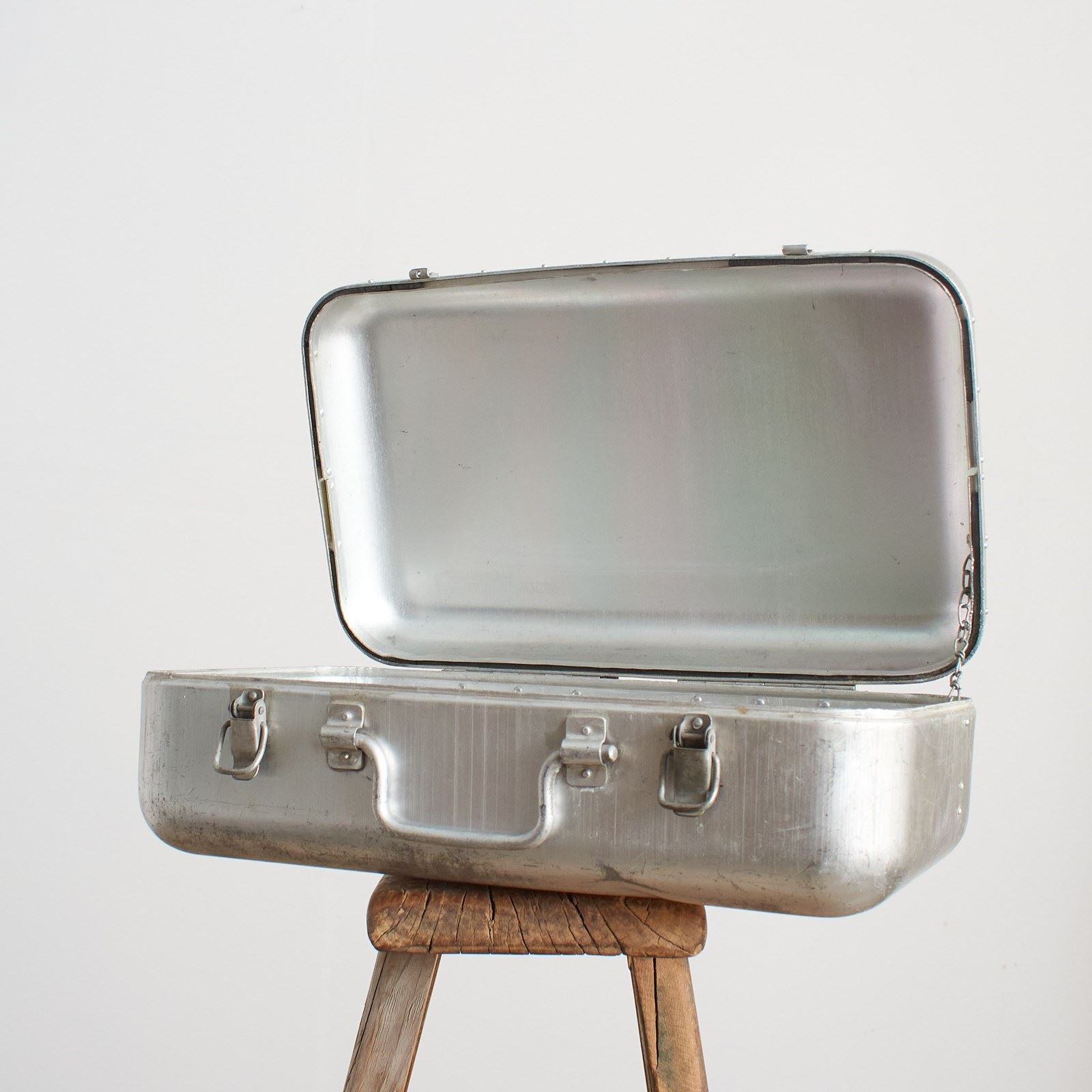 The box is made from aluminium with a clasp to open and close. A practical storage box which could be used for storing first aid items, craft materials, pens and pencils, the list is endless. The case retains its original red painted cross on the front.