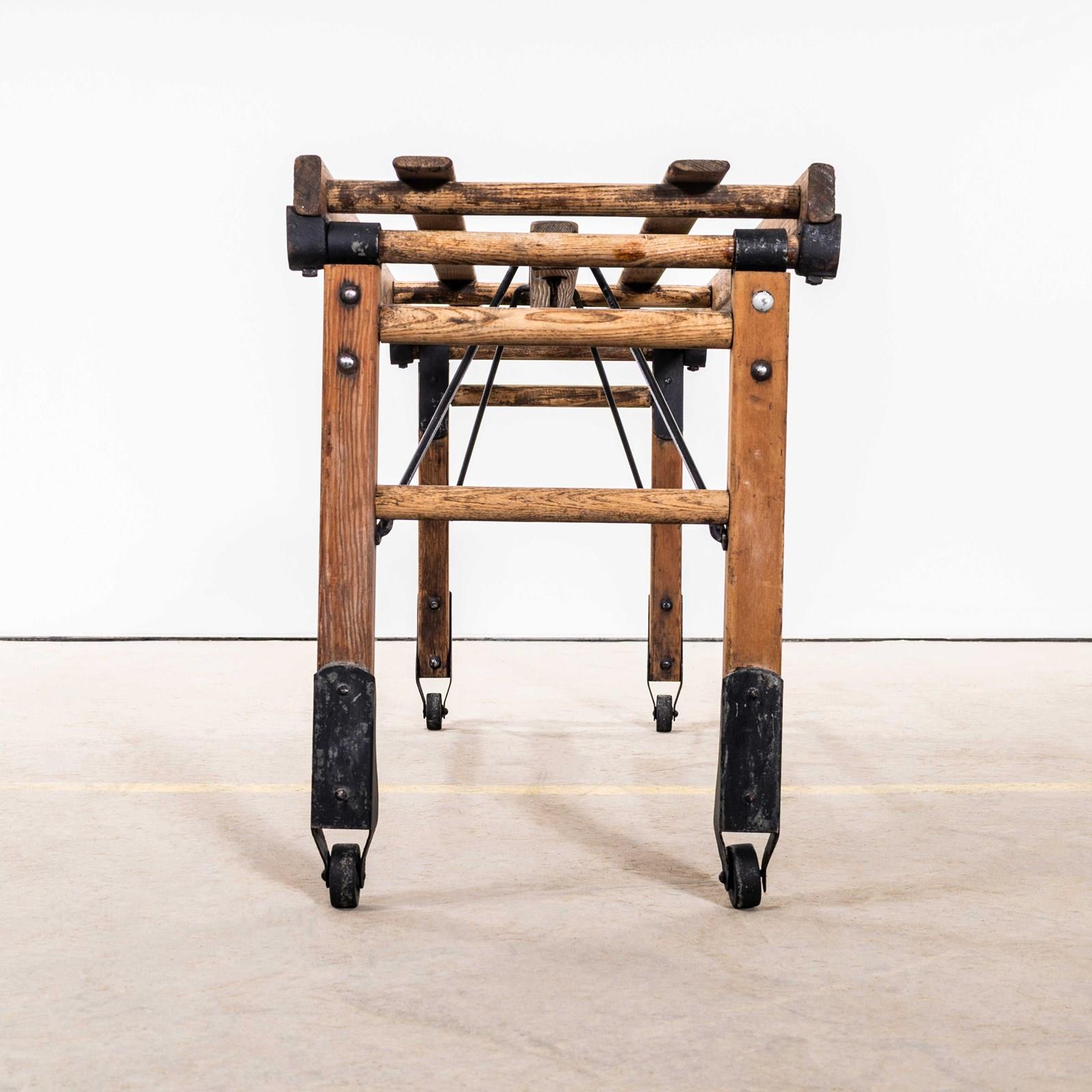 Good original Victorian laundry bench by Beatty Brothers. Practical piece originally used for washing dollies. The legs fold in and so it can be practically stored.