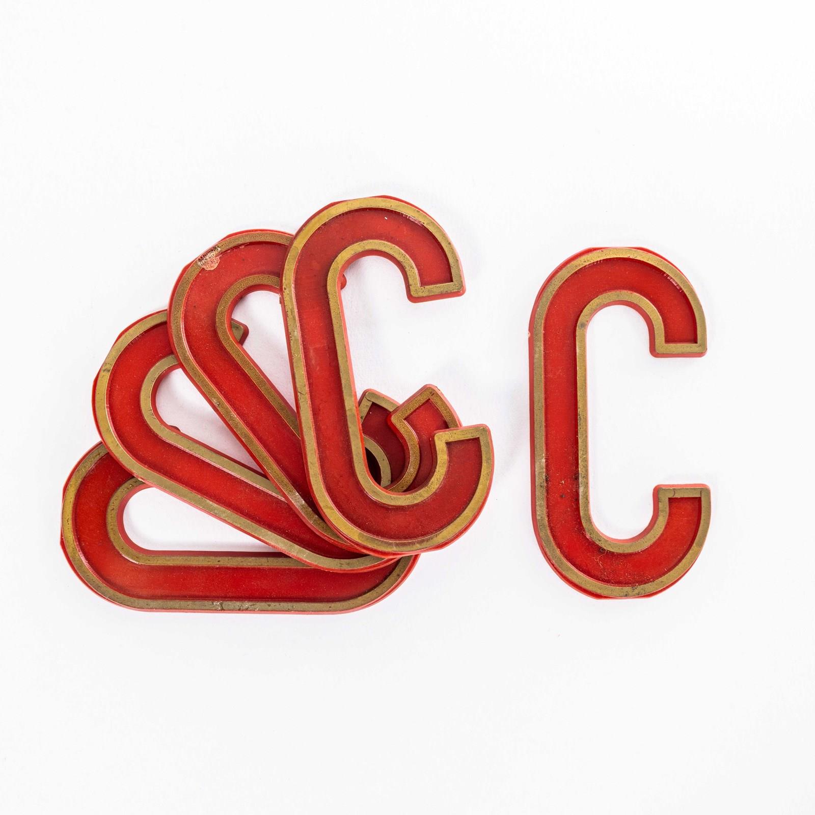 Classic English cinema letters used at cinemas as signage for the film title, actors and so on. Made in acrylic plastic they slotted into tracks on the billboard. The term marquee comes from the French word Marquise, a name given by French soldiers in the 17th Century to a large fabric tent, and then adopted to cover the ‘tent’ like entrance over the entrance to cinemas and theatres. Listing is for one letter as shown. Judging by the condition, these are new old stock or certainly rarely used.