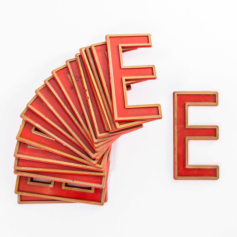 Classic English cinema letters used at cinemas as signage for the film title, actors and so on. Made in acrylic plastic they slotted into tracks on the billboard. The term marquee comes from the French word Marquise, a name given by French soldiers in the 17th Century to a large fabric tent, and then adopted to cover the ‘tent’ like entrance over the entrance to cinemas and theatres. Listing is for one letter as shown. Judging by the condition, these are new old stock or certainly rarely used.