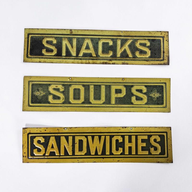 1930'S English Pressed Steel Café Signs - Set Of Three
